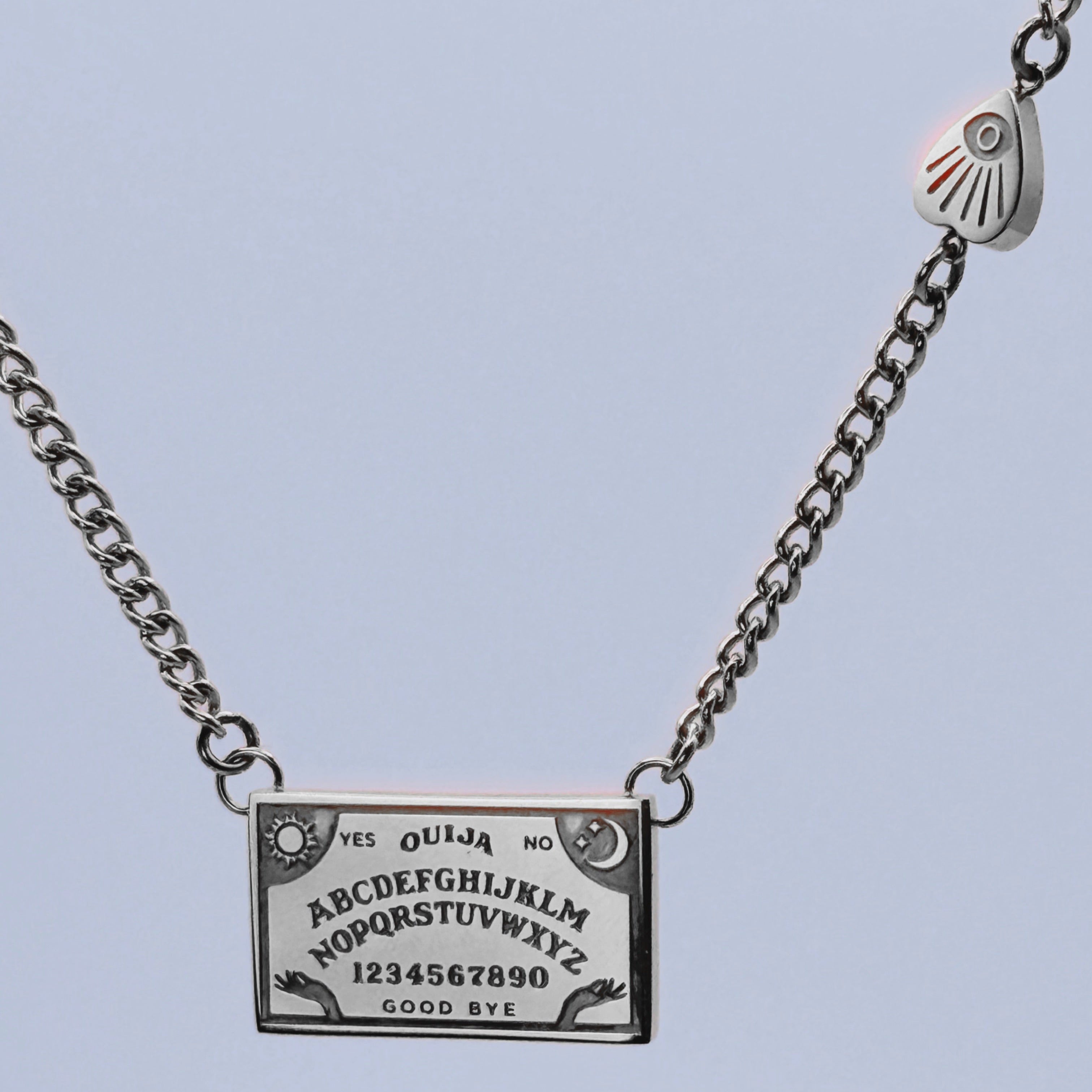 Channel the spirits in any outfit with our elegant Ouija Necklace. Outfitted with a matching All-Seeing Eye Planchette charm, all designs are etched and sandblasted for a unique but subtle finish that complements any outfit.