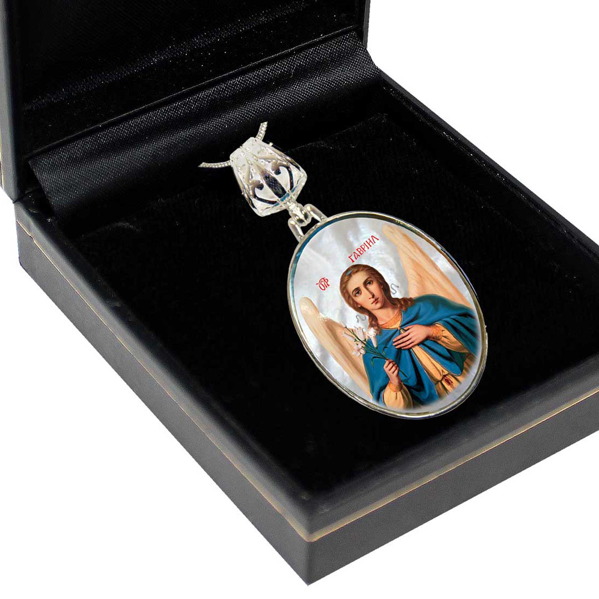 Saint Gabriel the Archangel Silver Plated Mother of Pearl Necklace - 43040 ‐ Oval