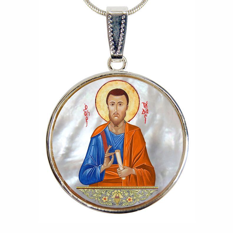 Saint Jude Silver Plated Mother of Pearl Necklace Jewelry - 43036 ‐ Round