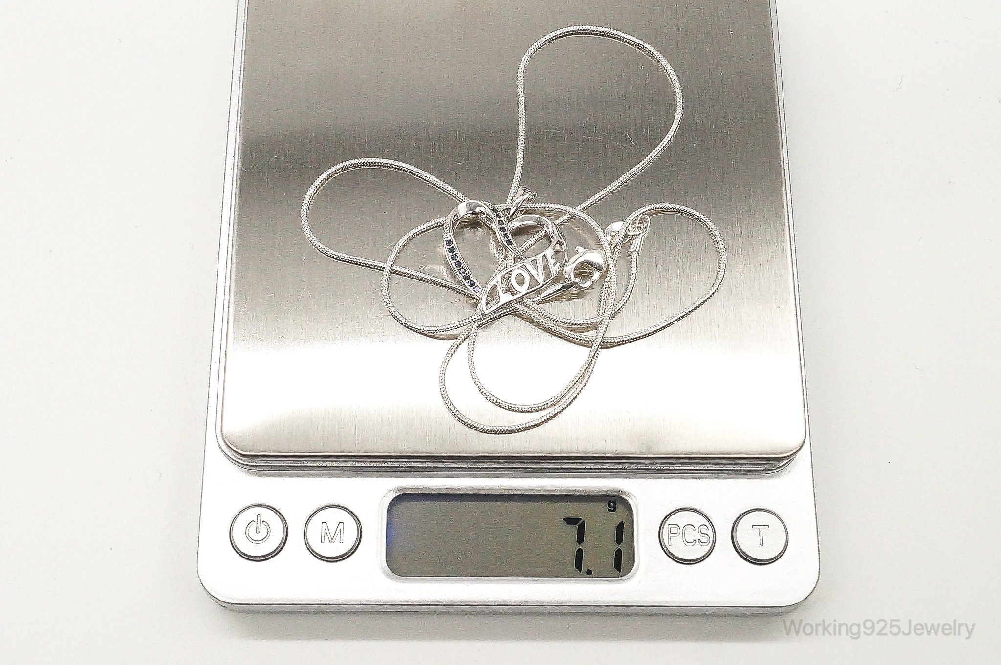 Sapphire Heart "LOVE" Sterling Silver Necklace
