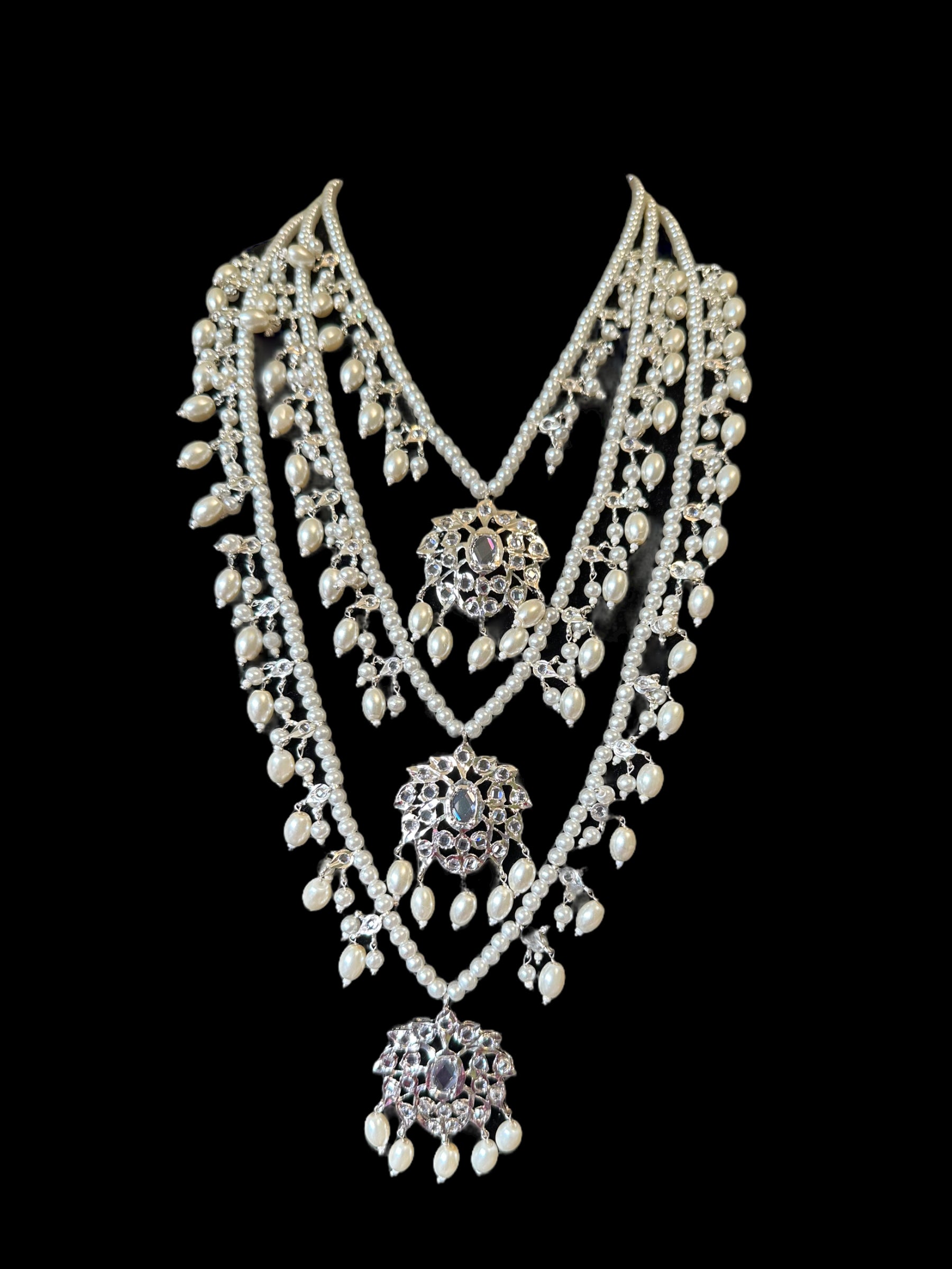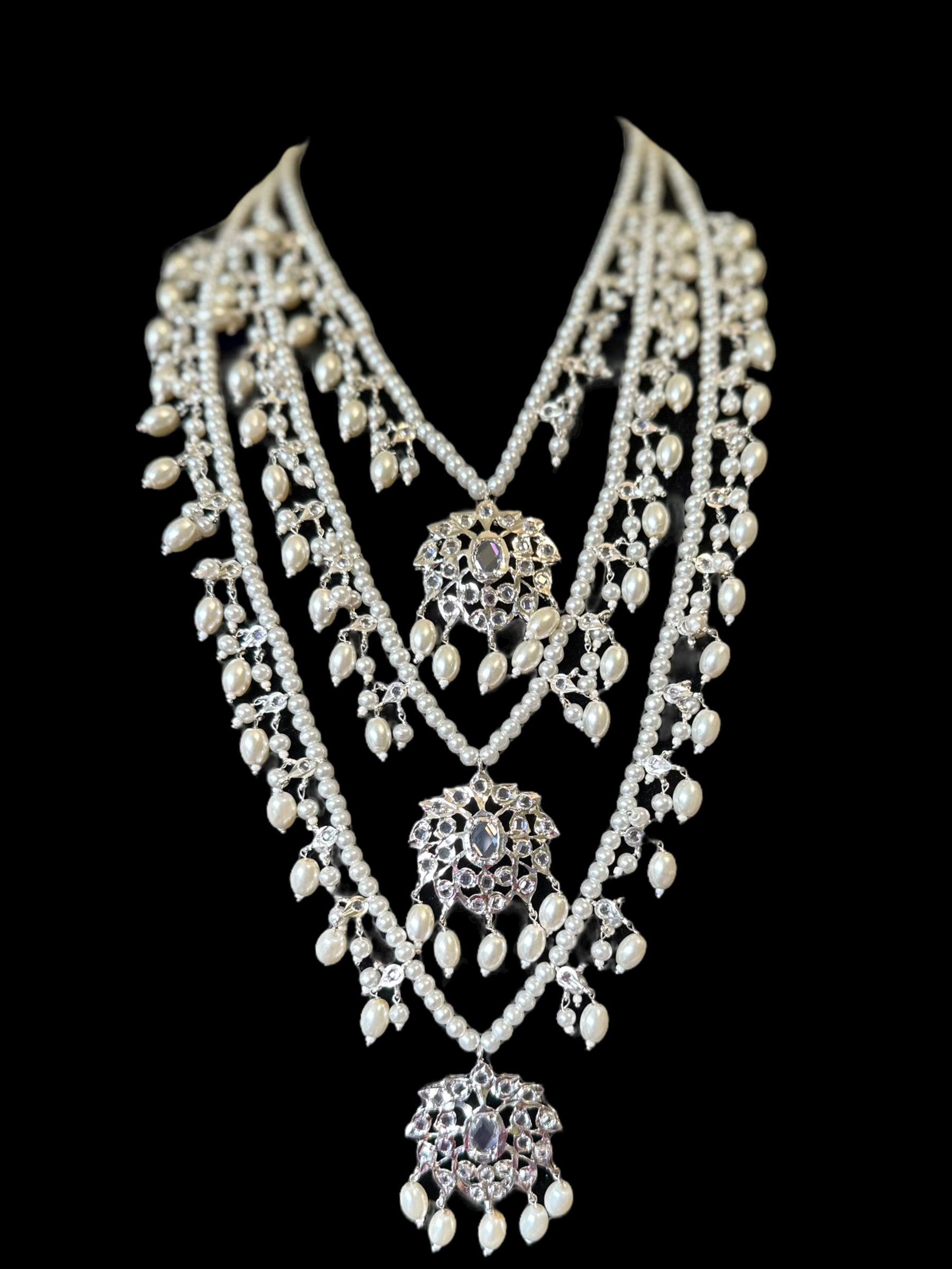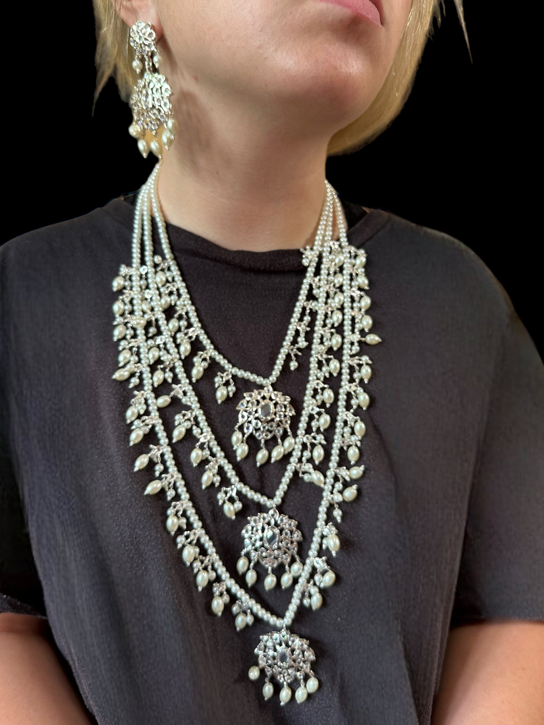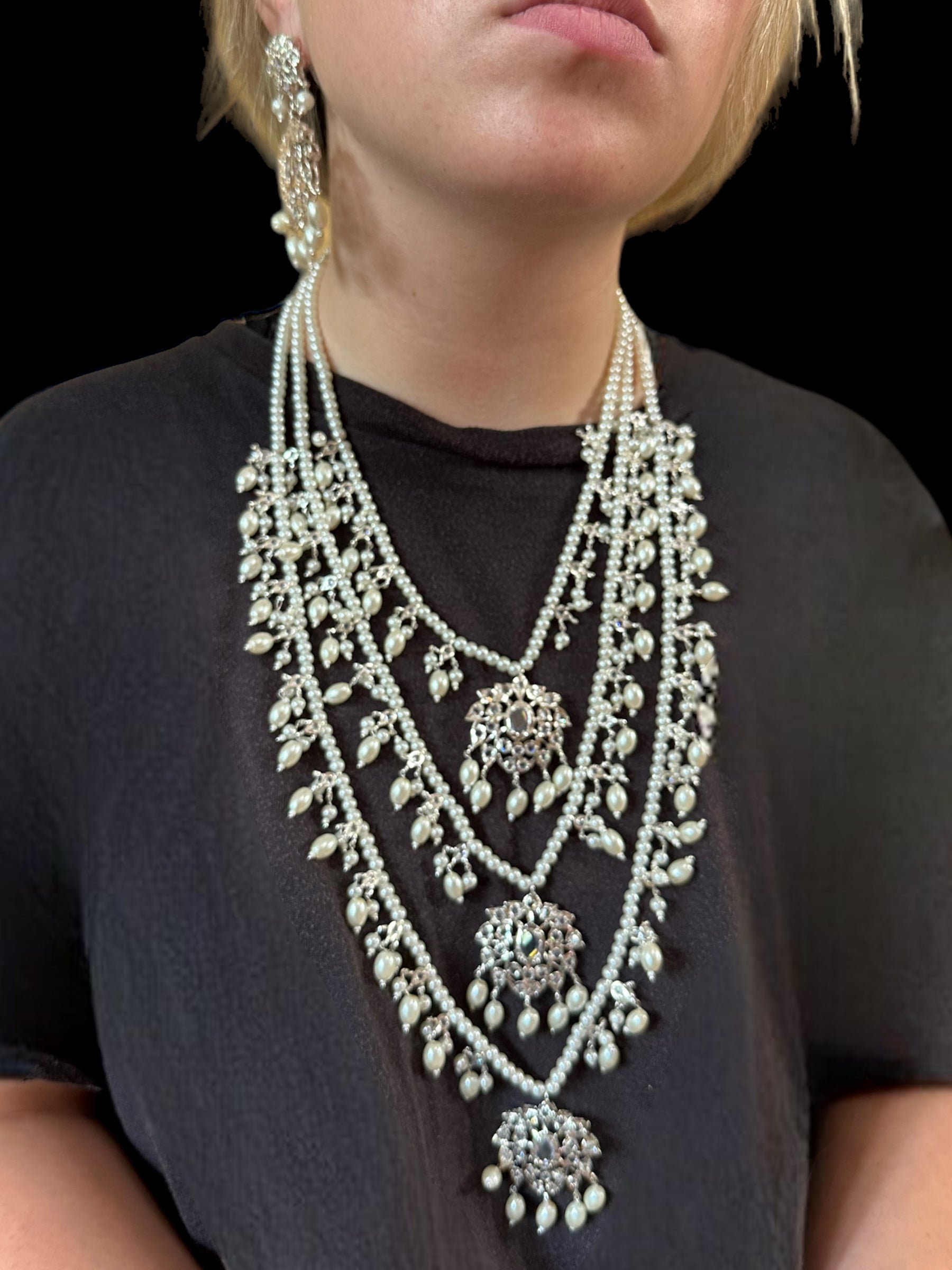 SAT76 Farmana three layer Hyderabadi necklace with earrings ( READY TO SHIP )