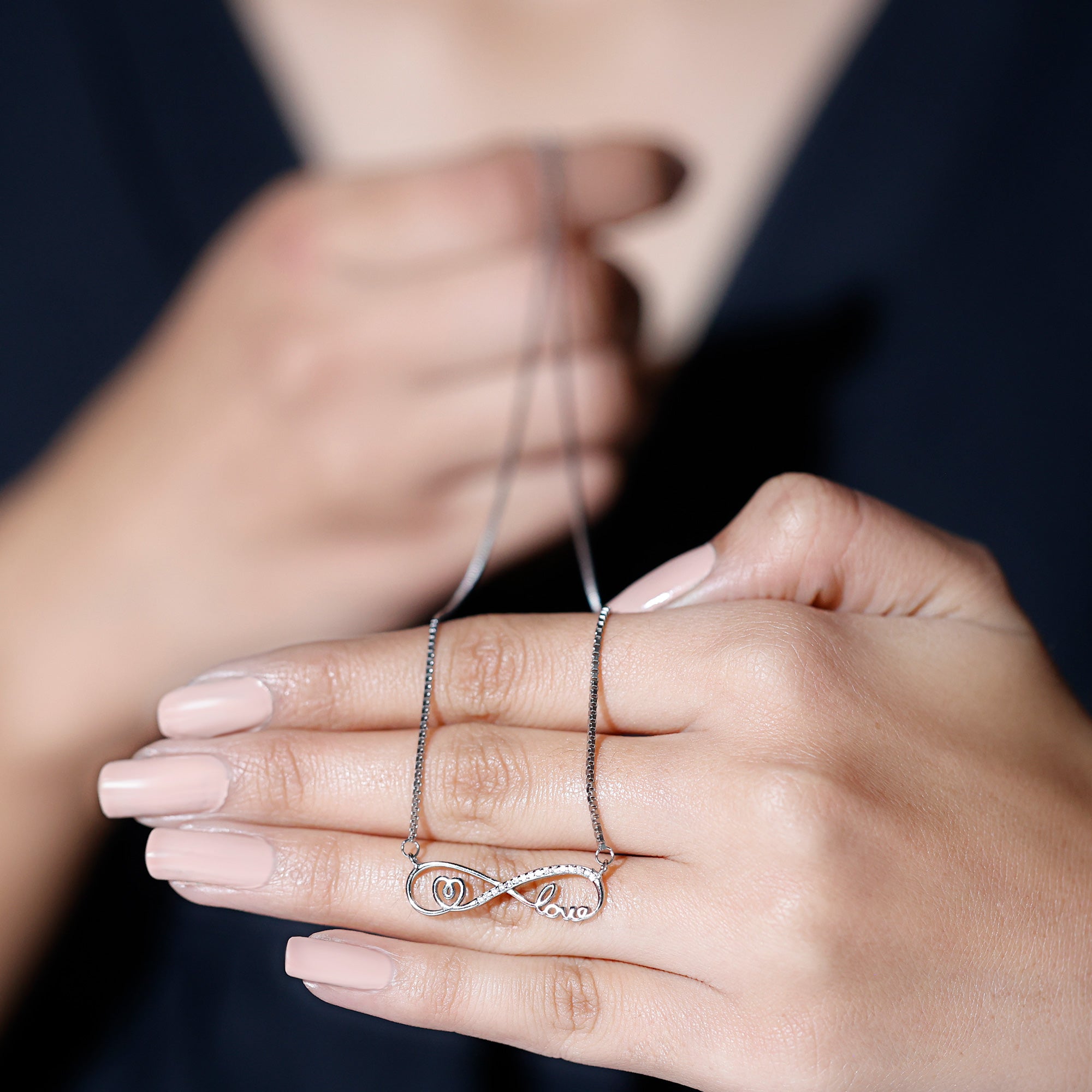 Simulated Diamond Infinity Necklace with Heart and Love ‐ AAAA / 92.5 Sterling Silver