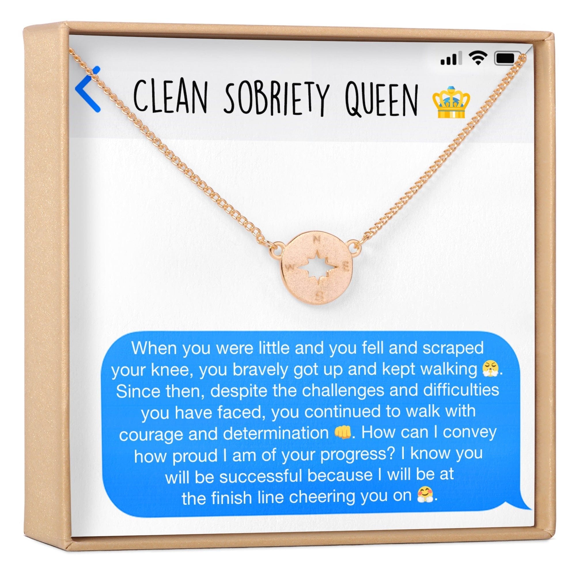 Sobriety Celebration Compass Pendant Necklace ‐ Rose Gold