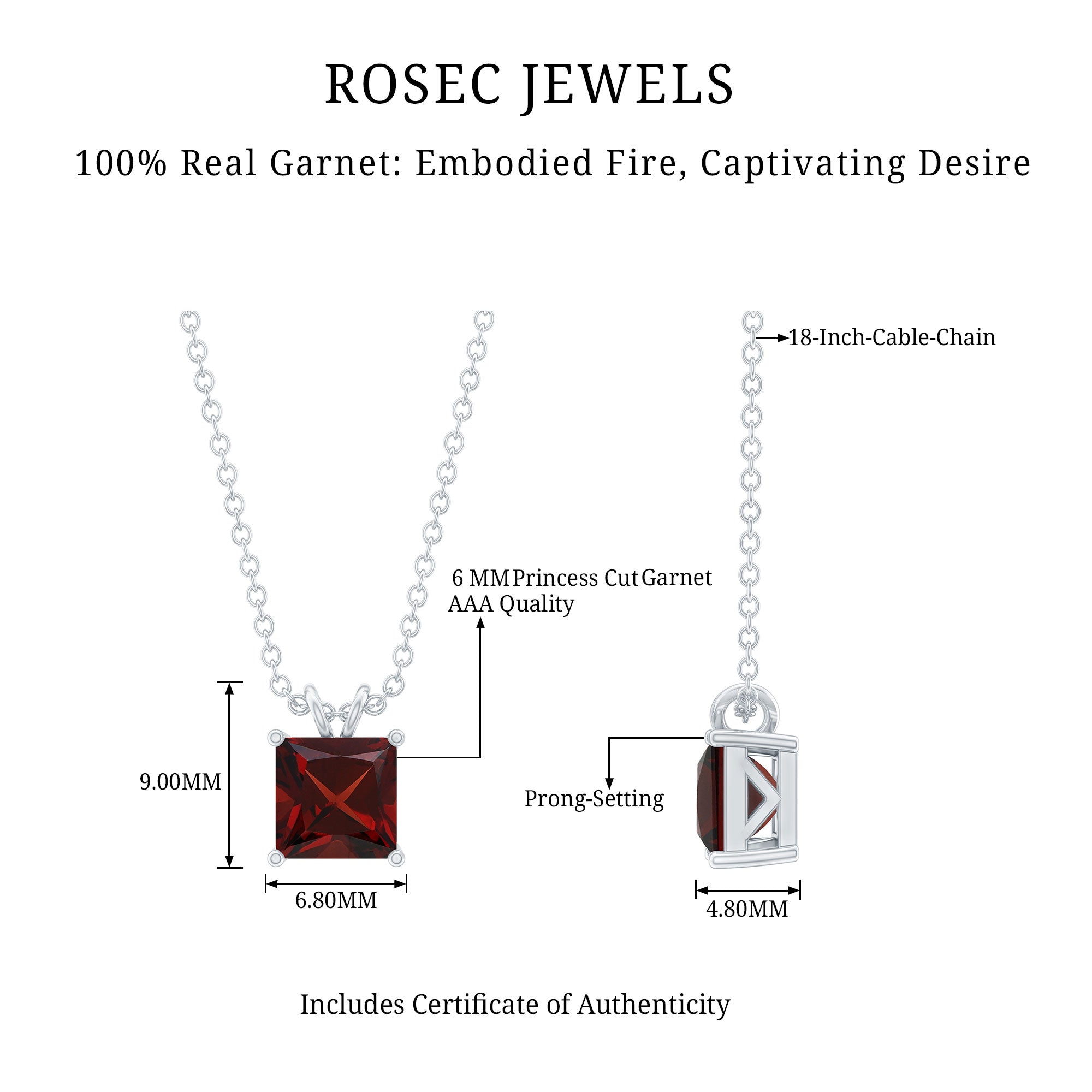 Solitaire 6 MM Garnet Princess Cut Pendant Necklace with Chain