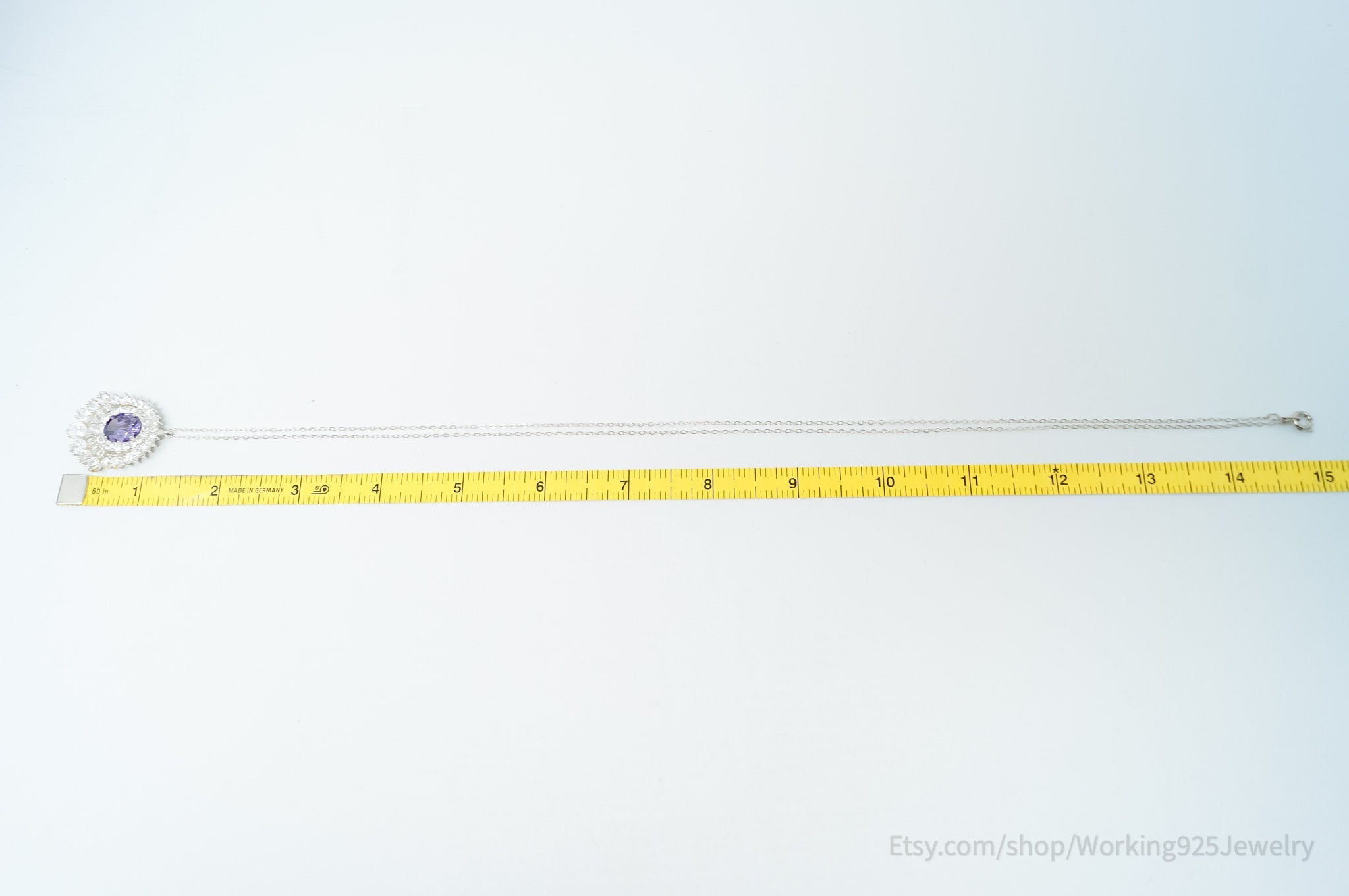 Vintage Amethyst CZ Art Deco Sterling Silver Long Chain Necklace