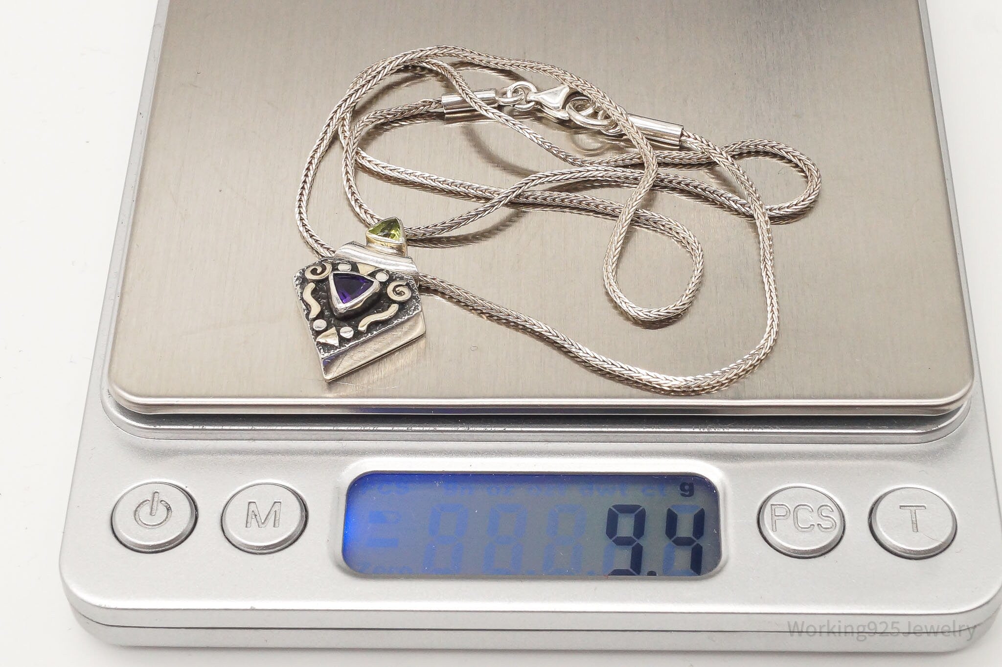 Vintage Amethyst Peridot Sterling Silver Necklace