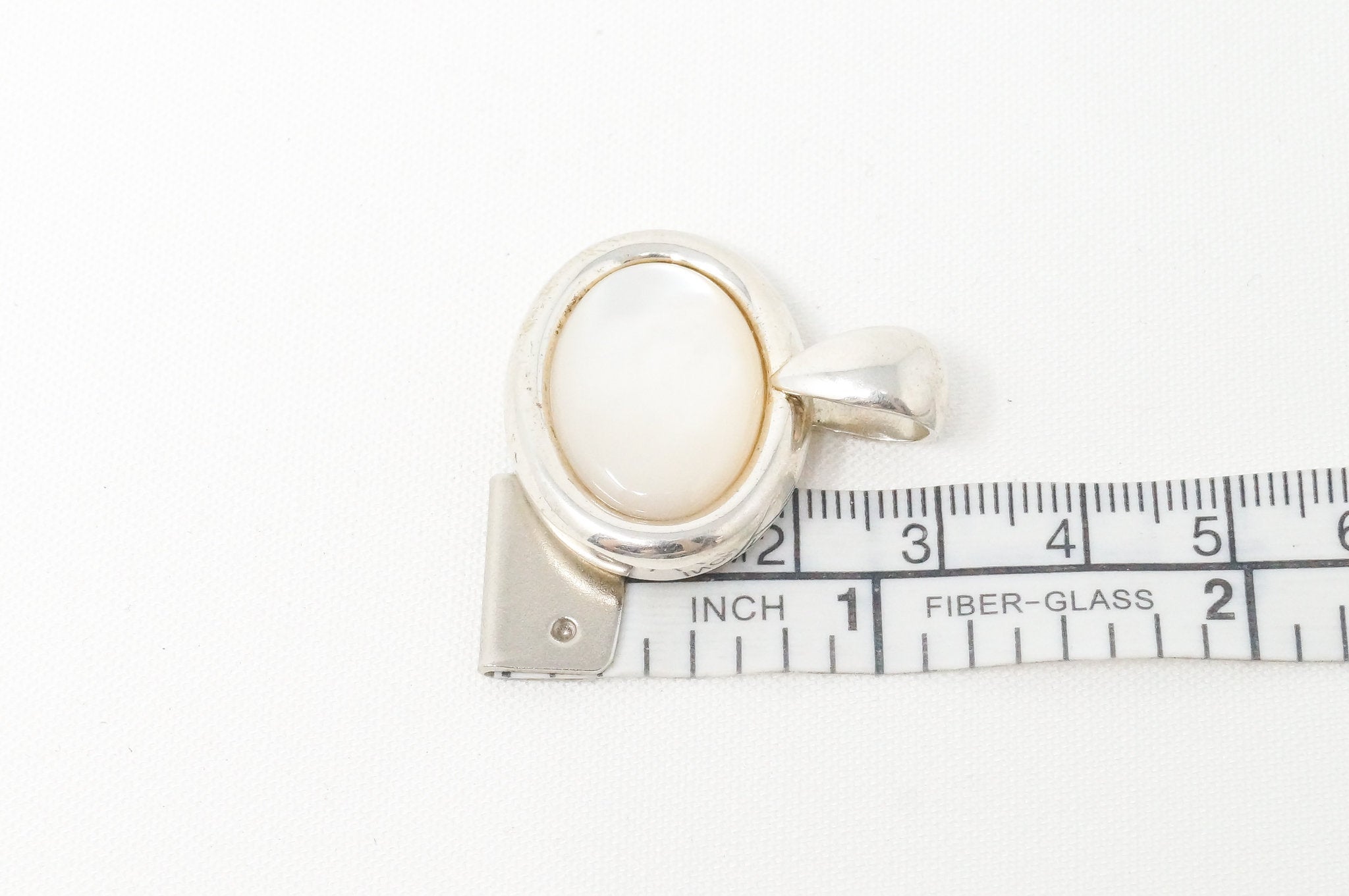 Vintage Designer Victor Yurivilca Abstract Geometric Mother of Pearl Sterling Silver Necklace Pendant