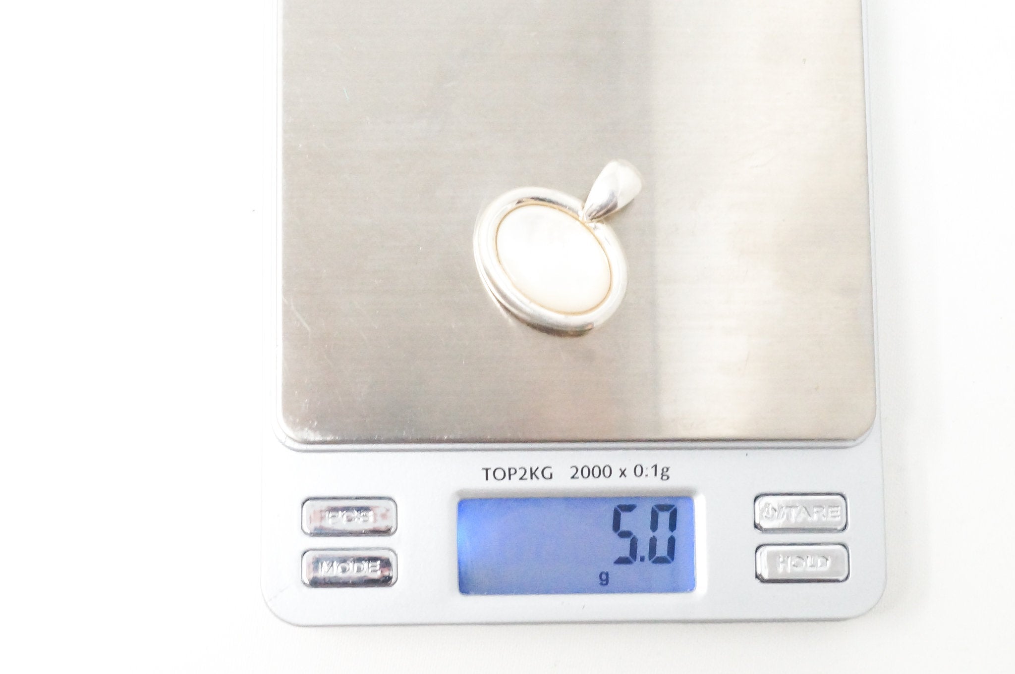 Vintage Art Deco Style Mother of Pearl Sterling Silver Necklace Pendant