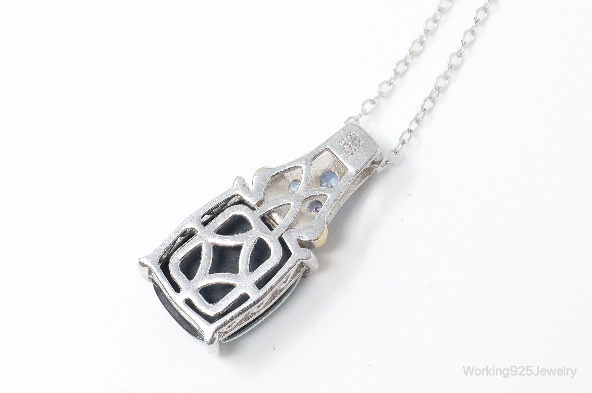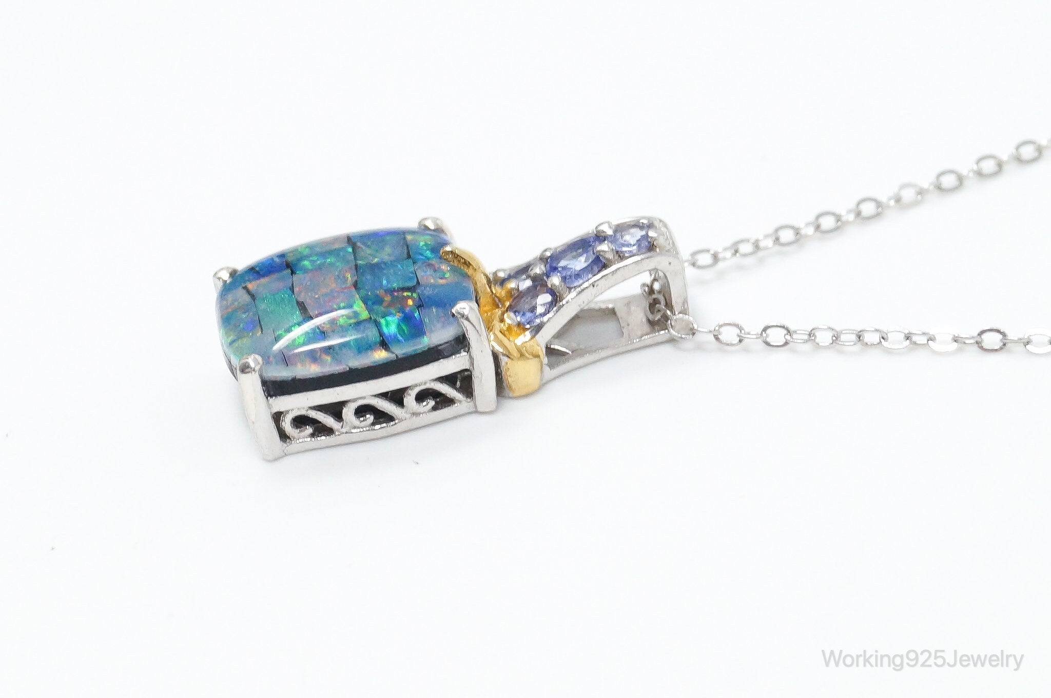 Vintage Blue Opal Amethyst Gold Vermeil Sterling Silver Necklace