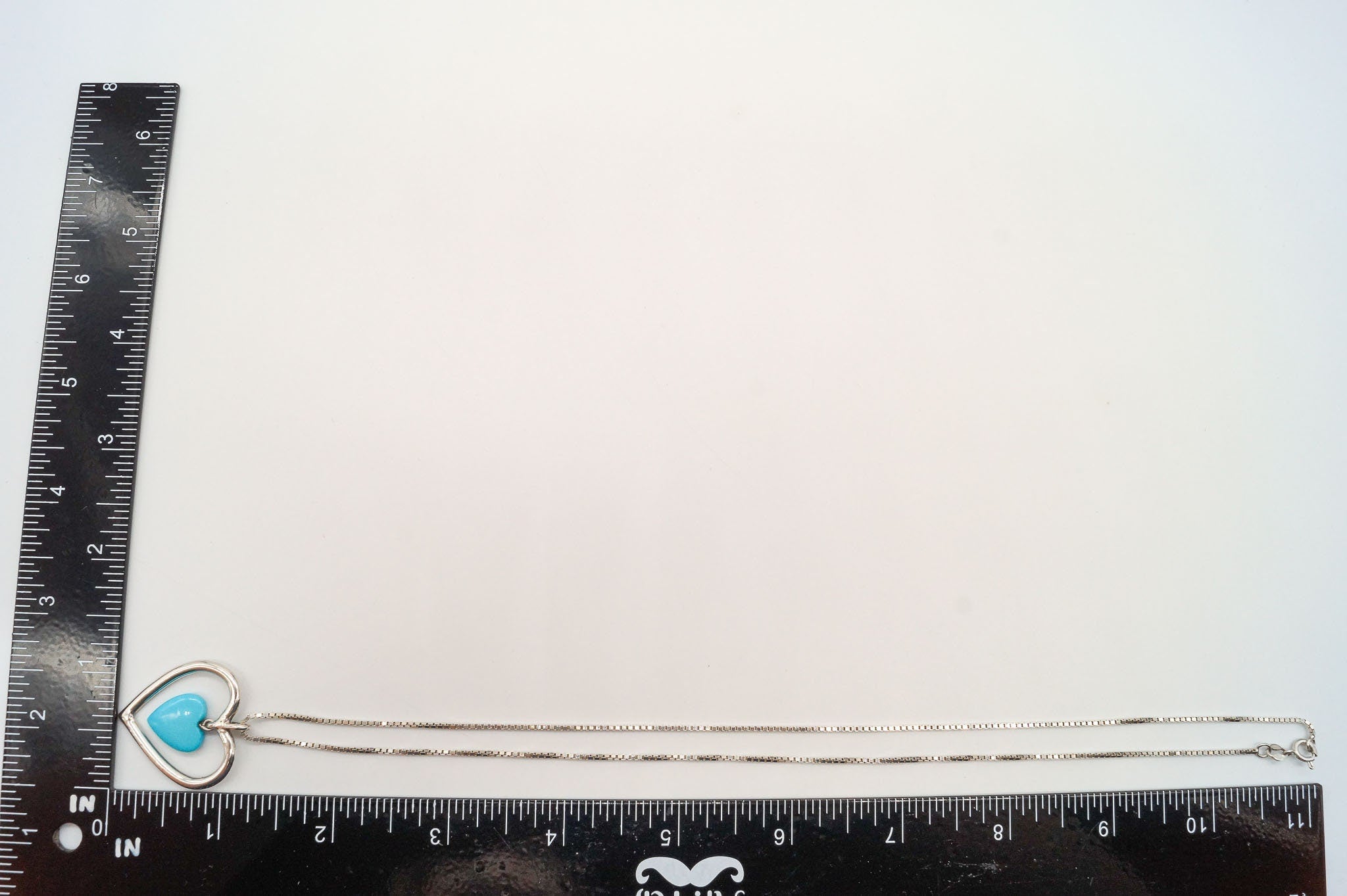 Vintage Blue Turquoise Heart Sterling Silver Necklace