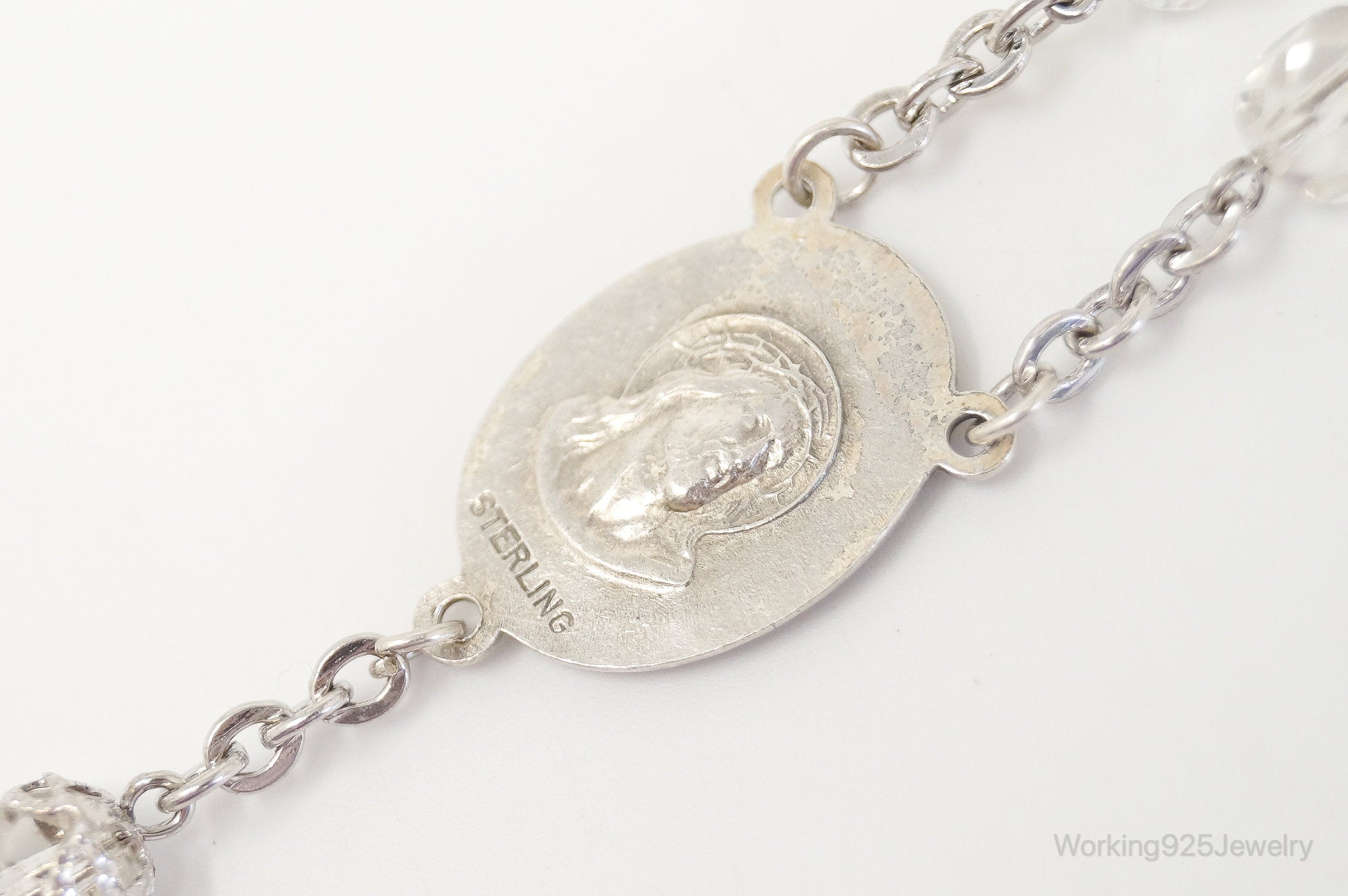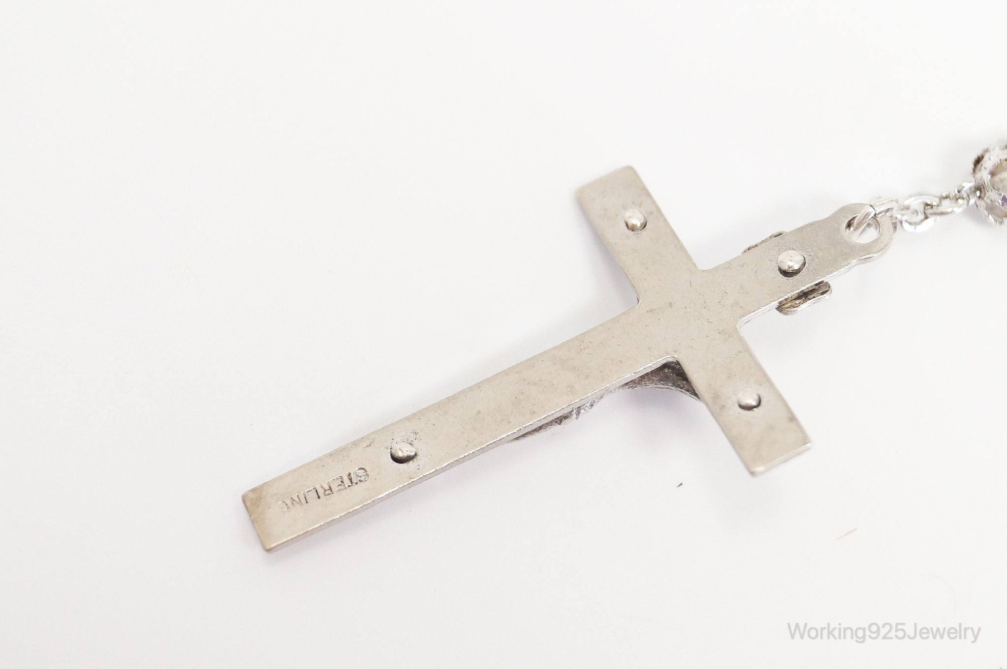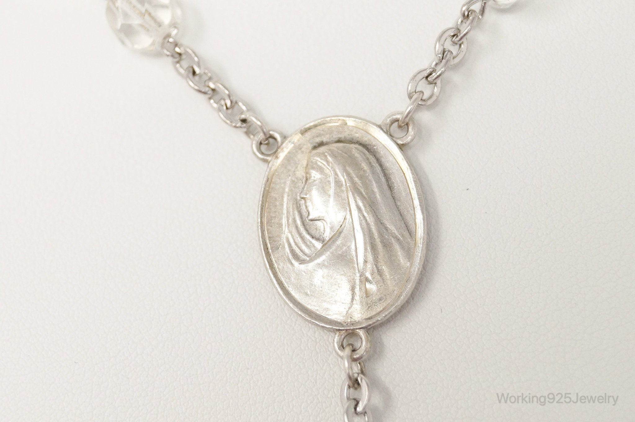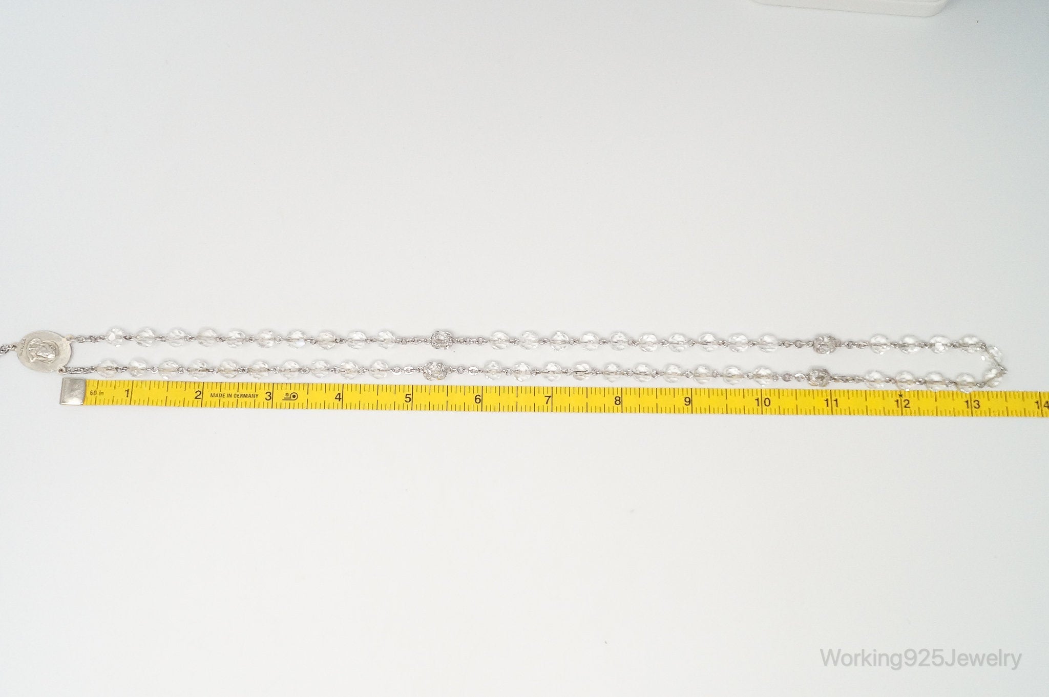 Vintage Crystal Beaded Rosary Cross Sterling Silver Necklace