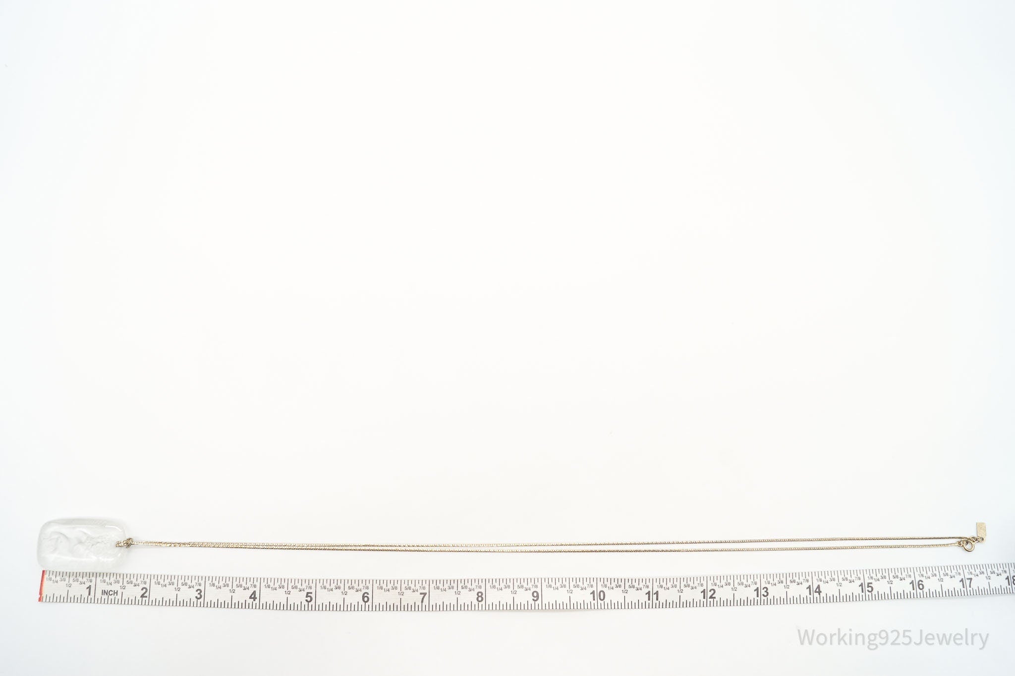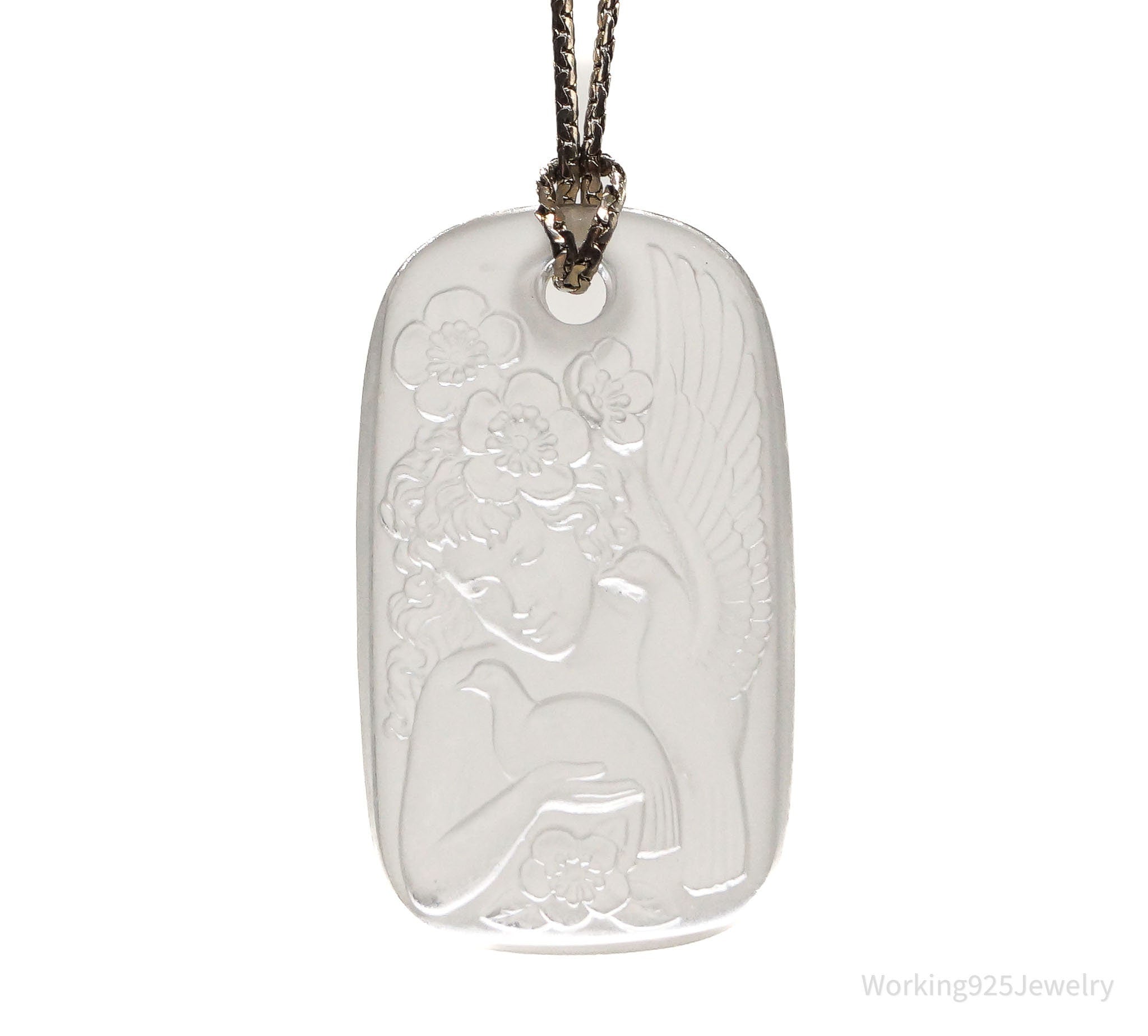 Vintage Designer Bergere Angel Cherub Glass Cameo Gold Tone Necklace