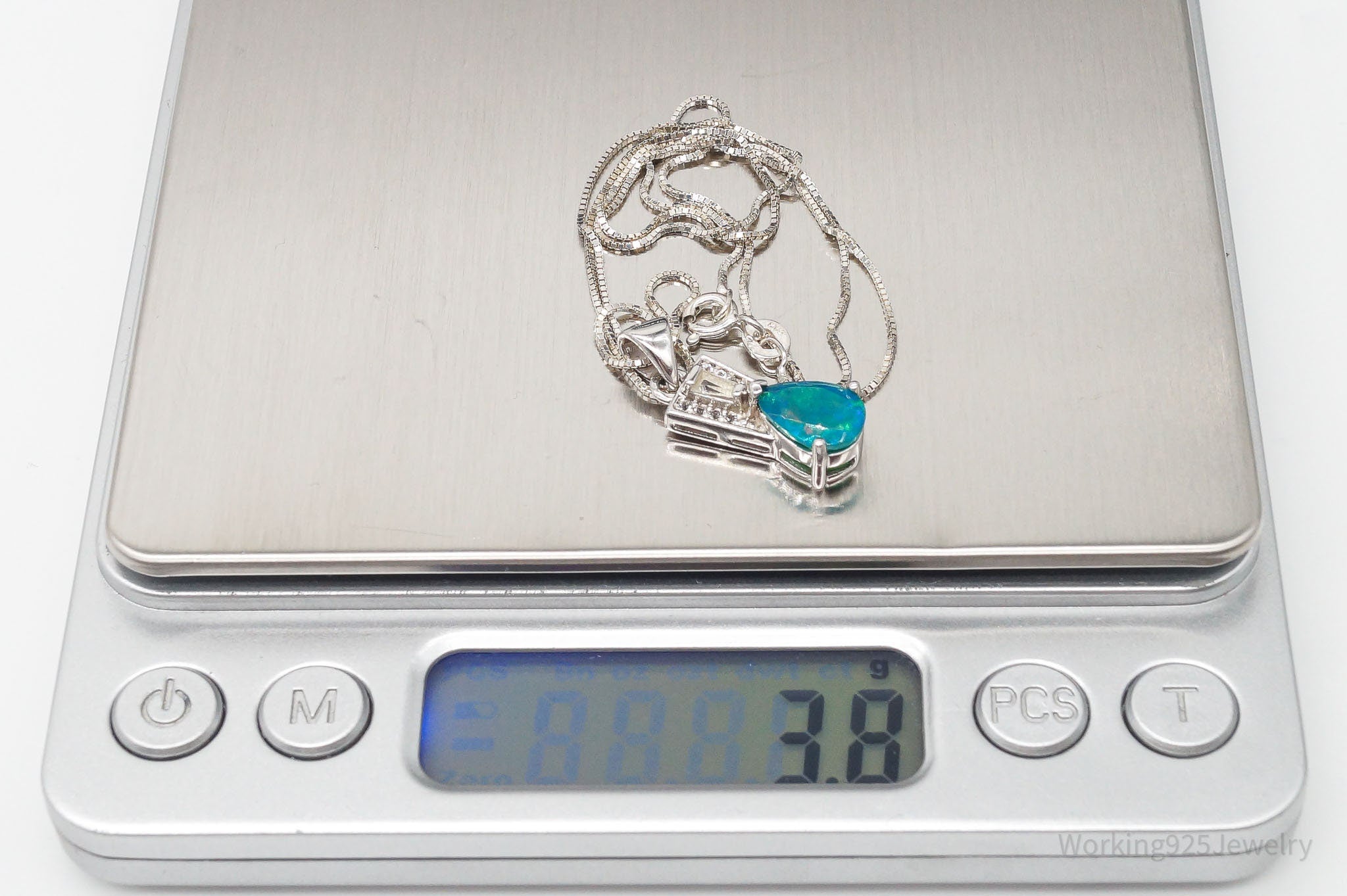 Vintage Designer Blue Opal Cubic Zirconia Sterling Silver Necklace