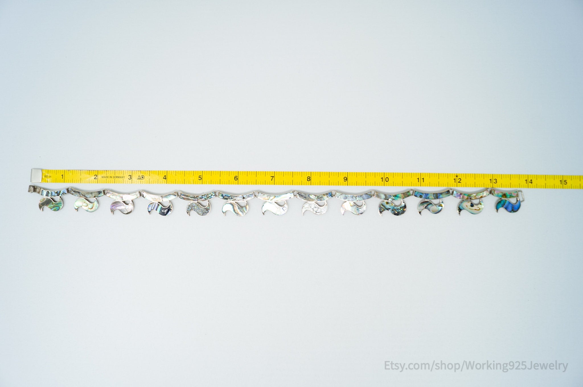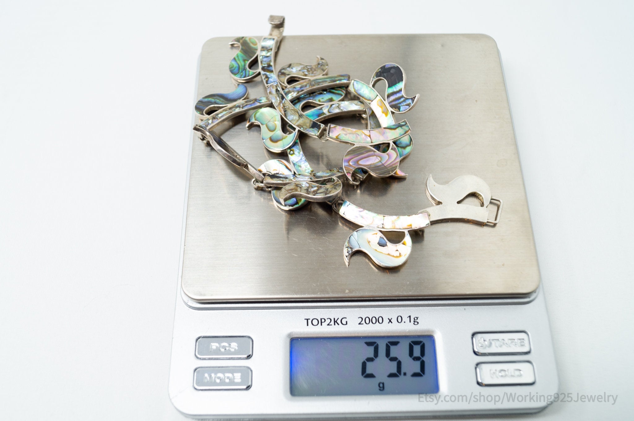 Vintage Designer JE Hecho En Mexico Abalone Shell Sterling Silver Necklace
