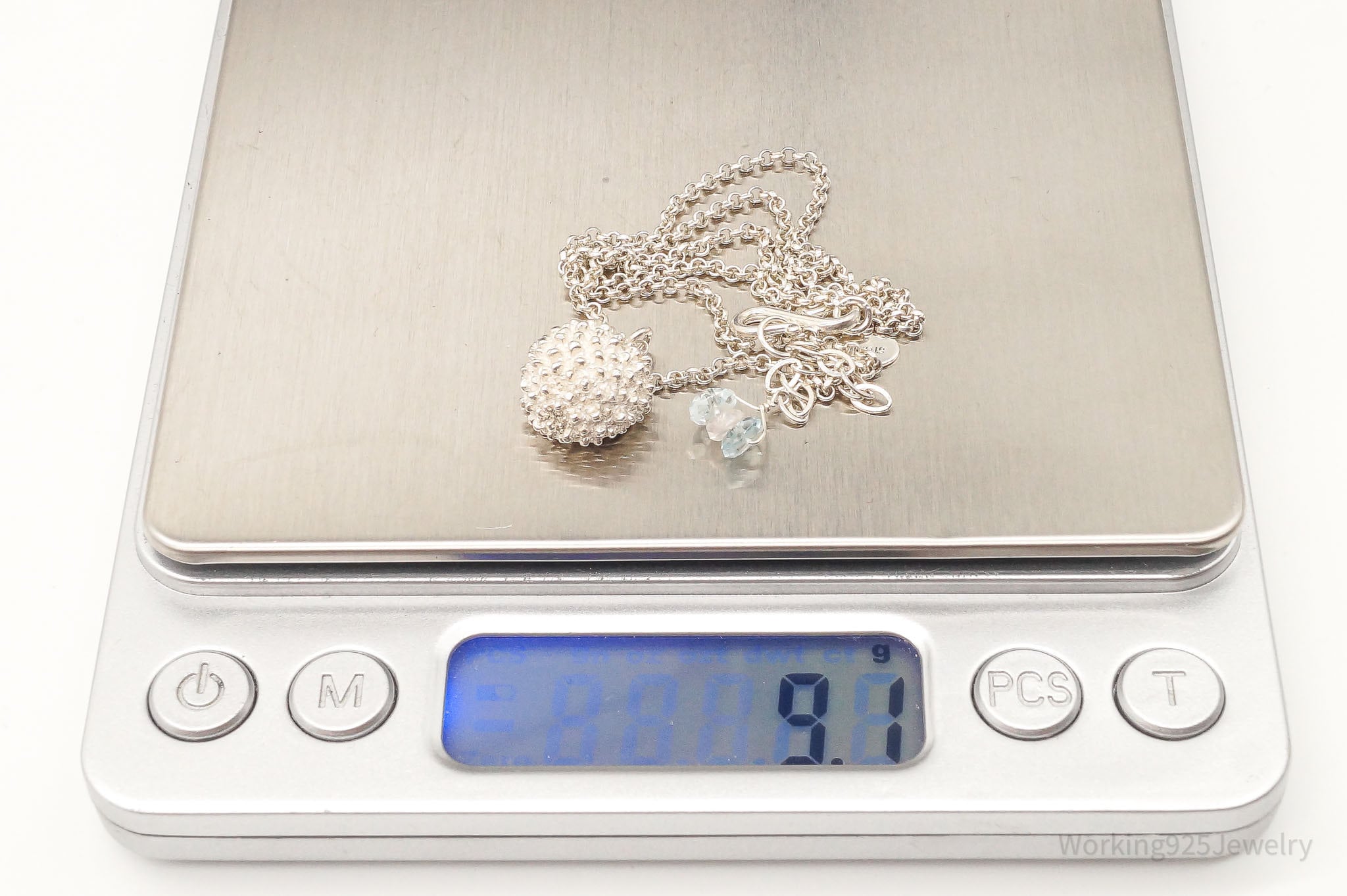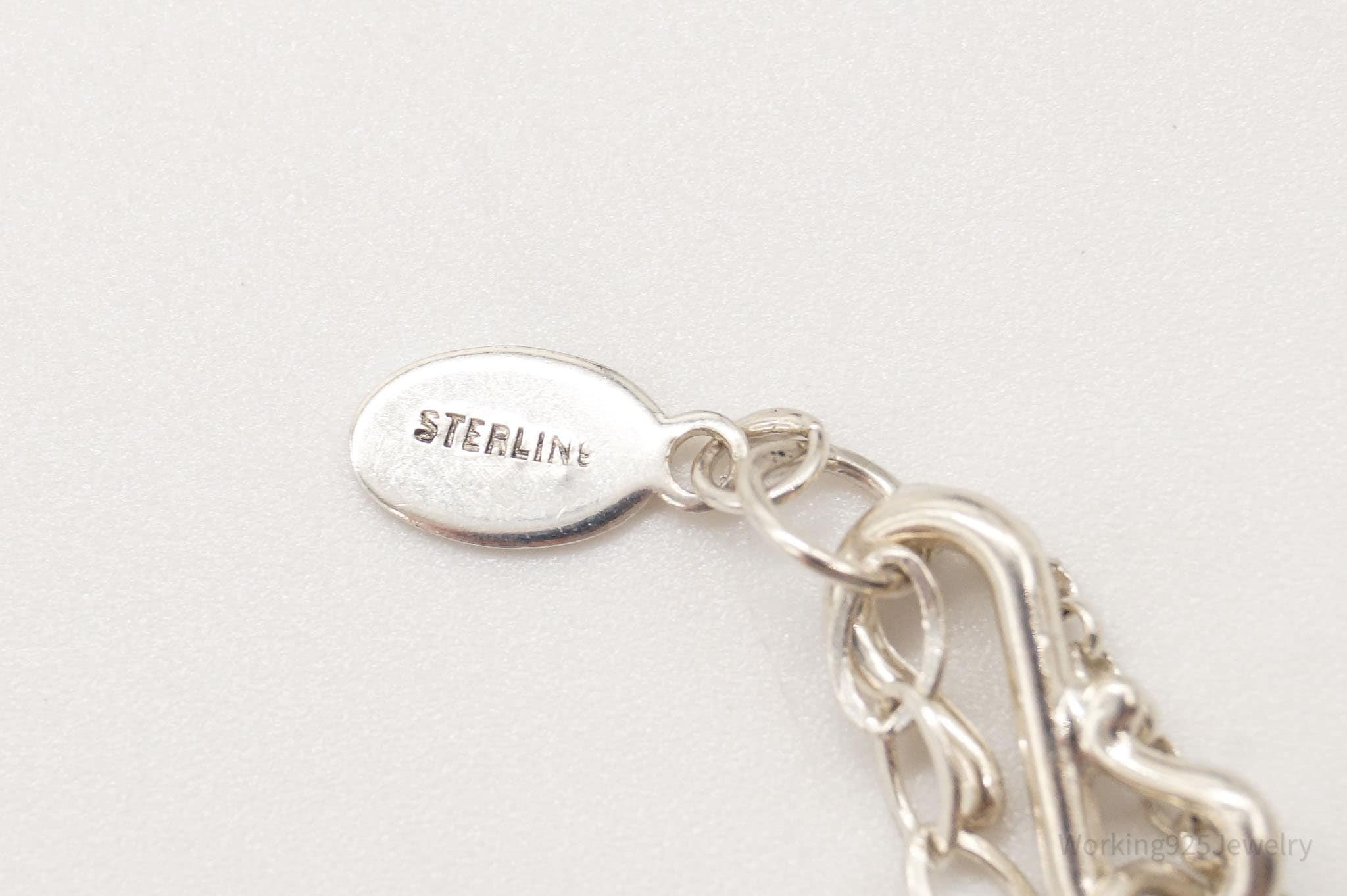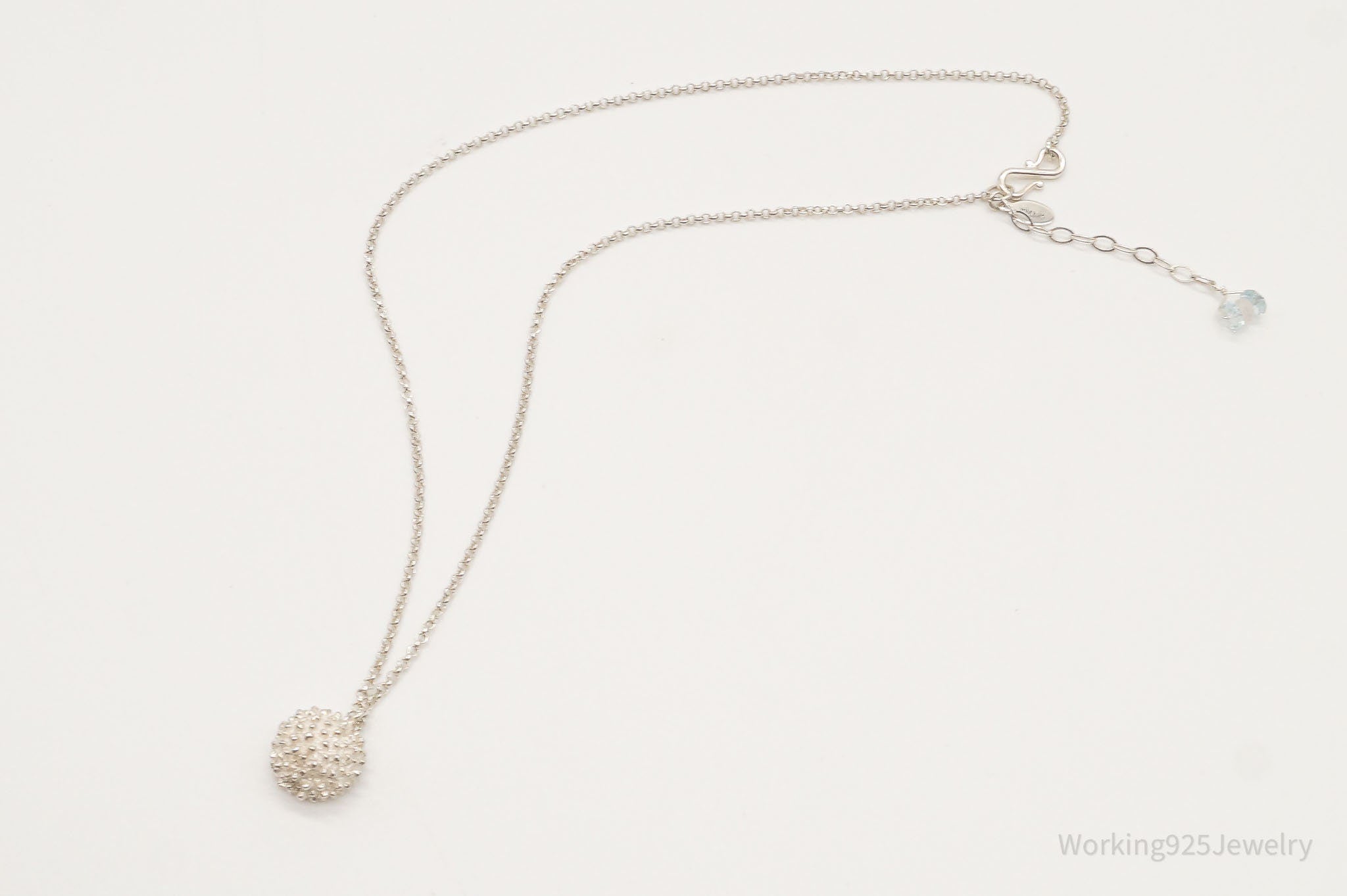 Vintage Designer ML Modernist Blue Topaz Quartz Sterling Silver Chain Necklace