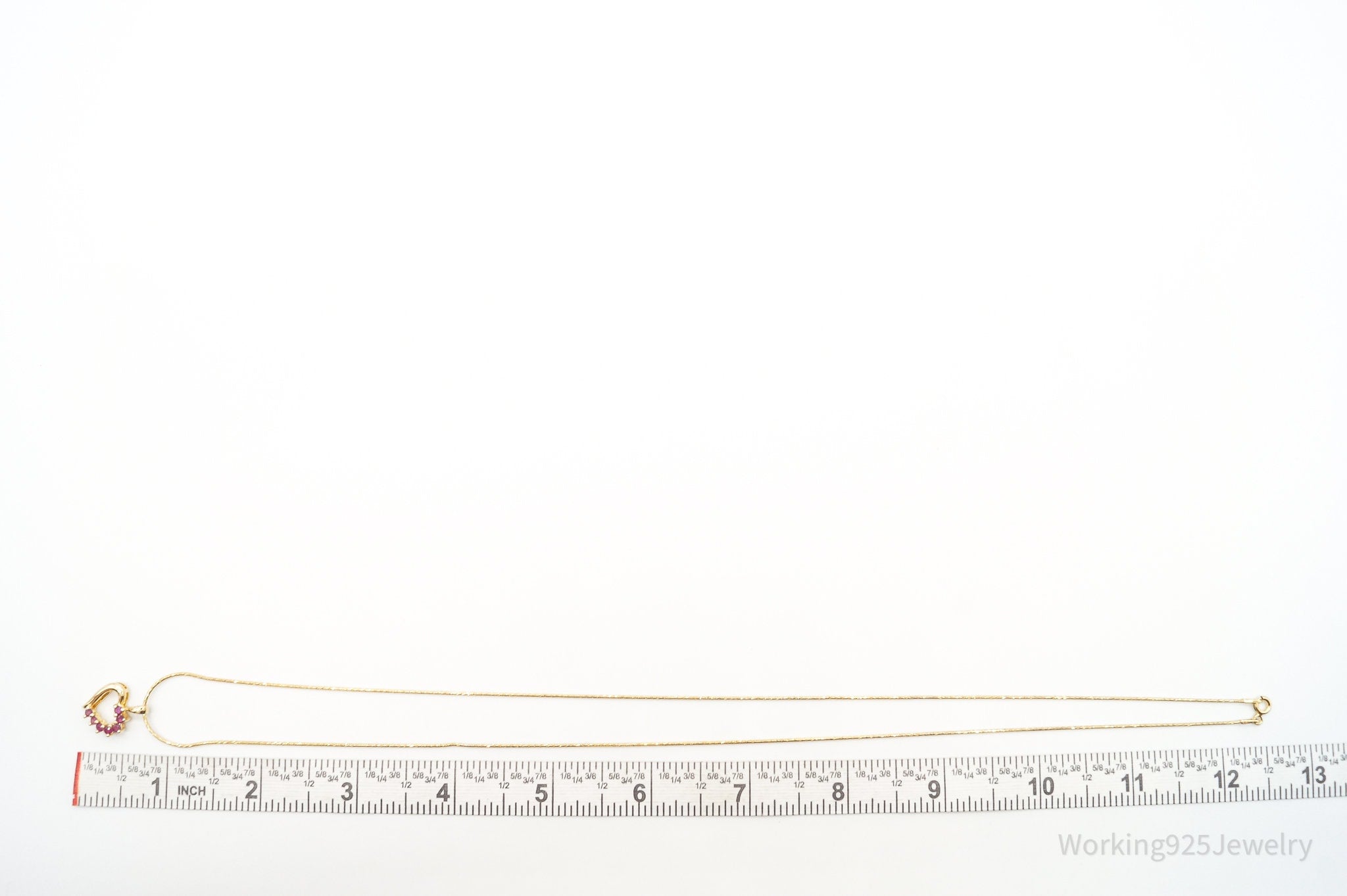 Vintage Designer Ross Simons Ruby Heart Gold Vermeil Sterling Silver Necklace