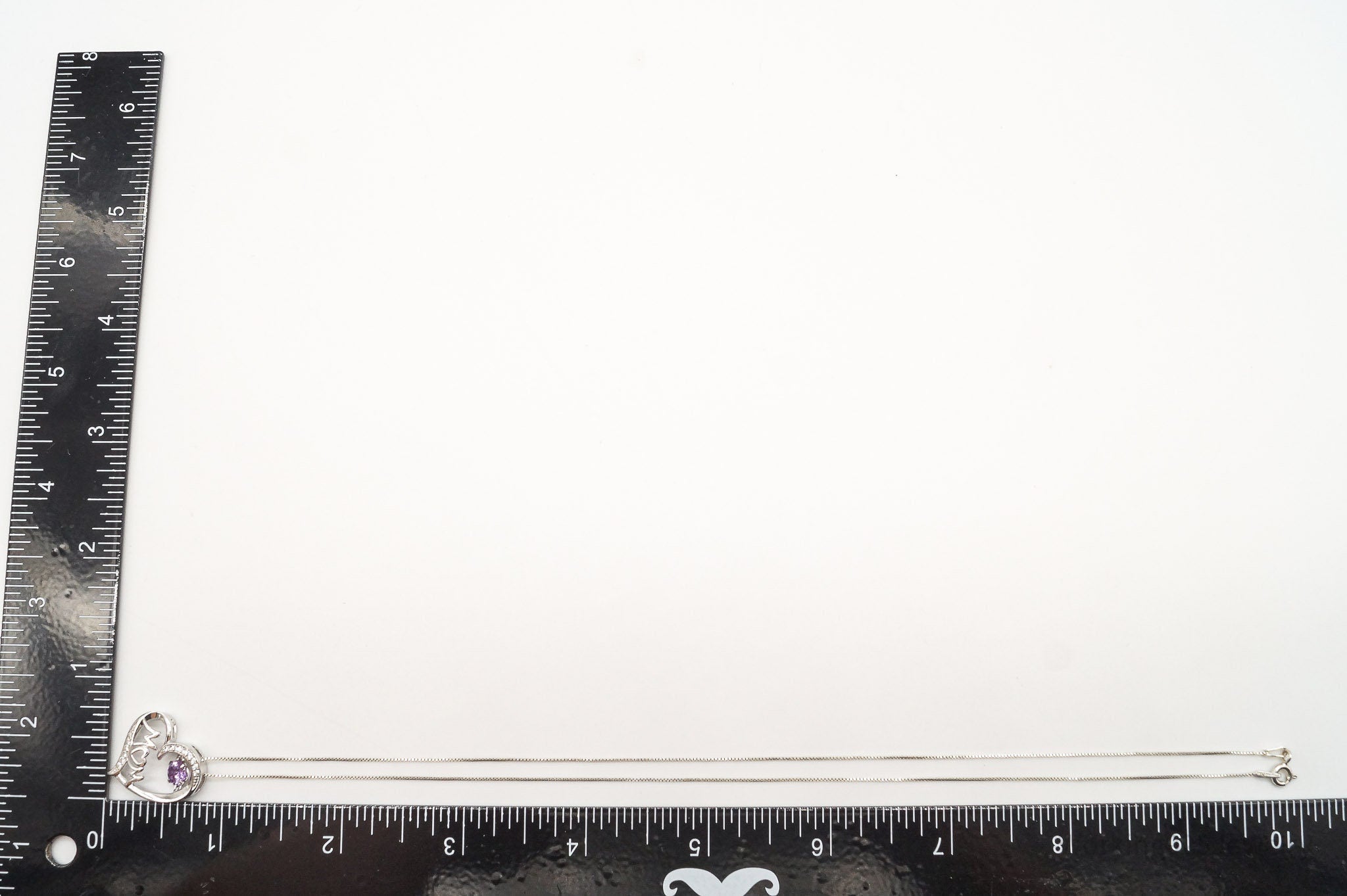 Vintage Designer SAI Amethyst Diamond Heart "Mom" Sterling Silver Necklace