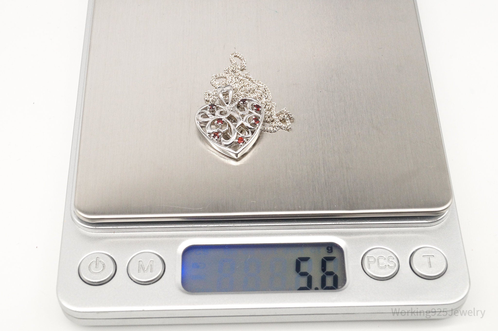 Vintage Garnet Heart Sterling Silver Necklace