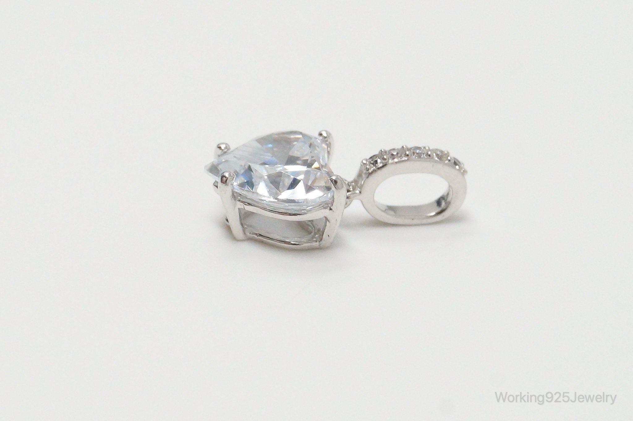 Vintage Heart Cubic Zirconia Sterling Silver Necklace Pendant