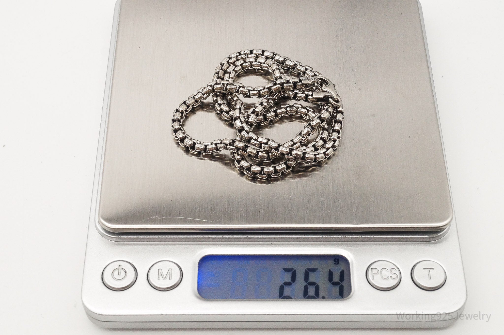 Vintage High Fashion Sterling Silver Puffy Box Chain Link Necklace