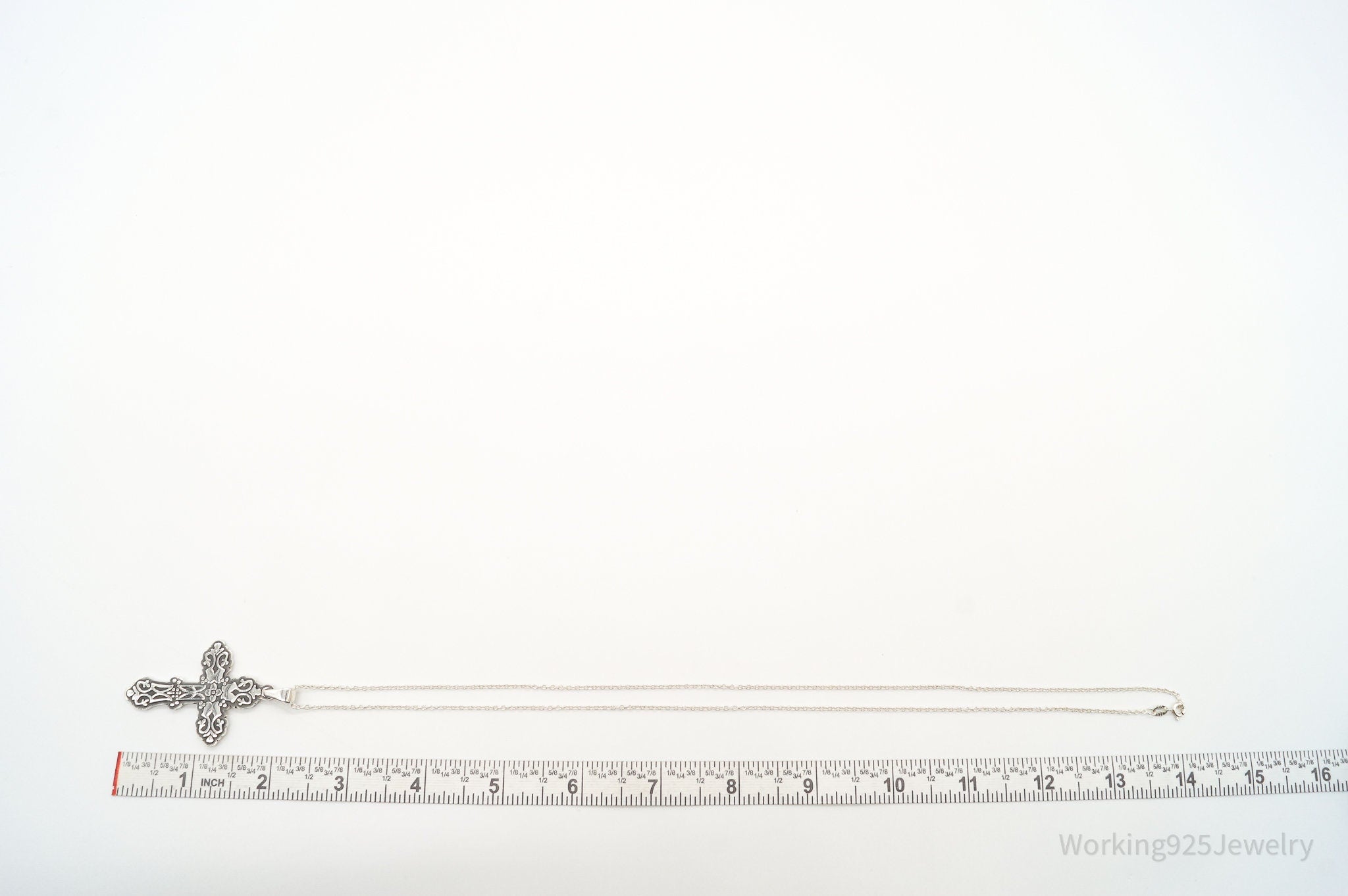 Vintage Large Mexico Artisan CII Cross Sterling Silver Necklace