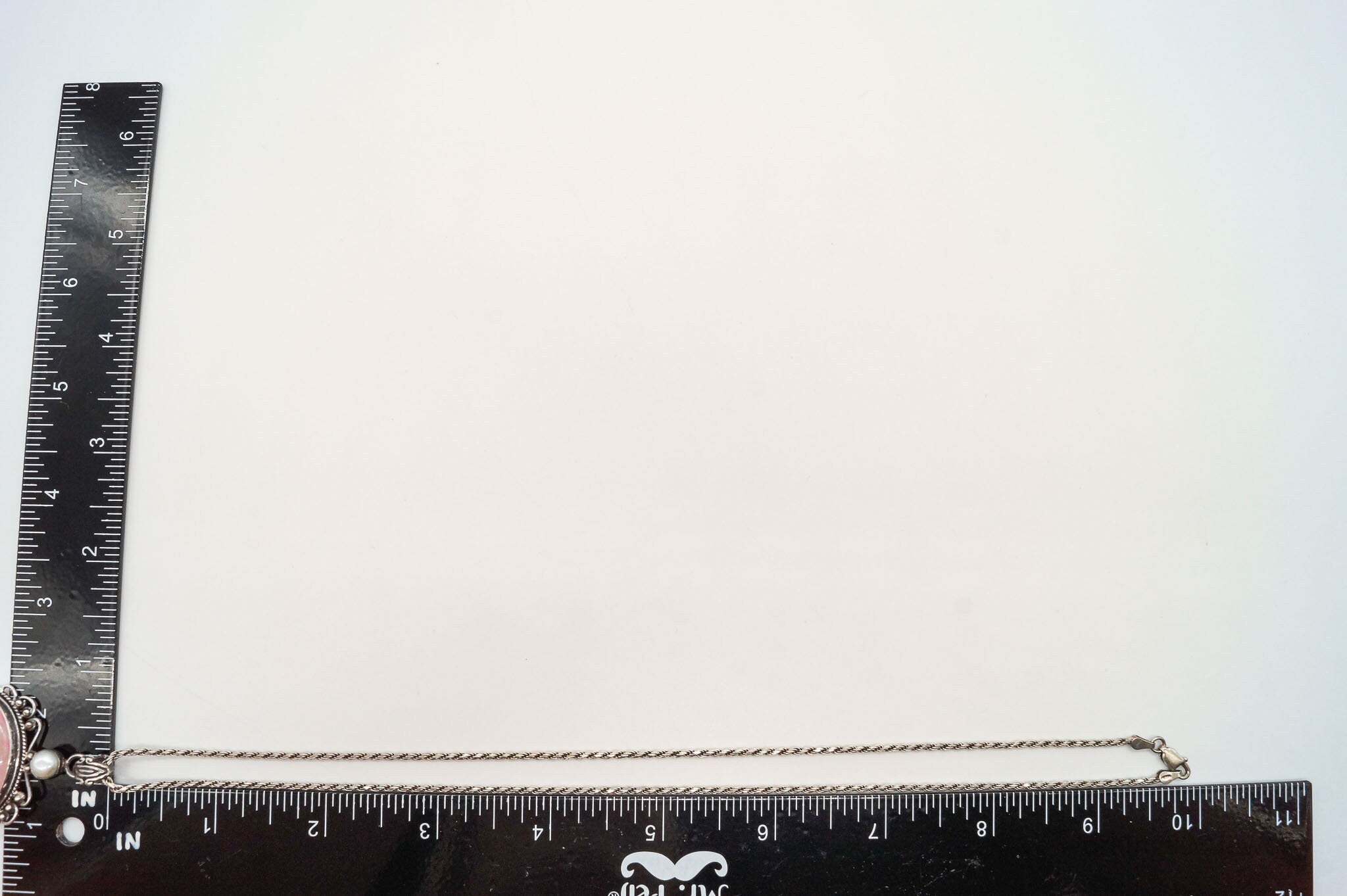 Vintage Large Pink Lace Agate & Pearl Sterling Silver Necklace