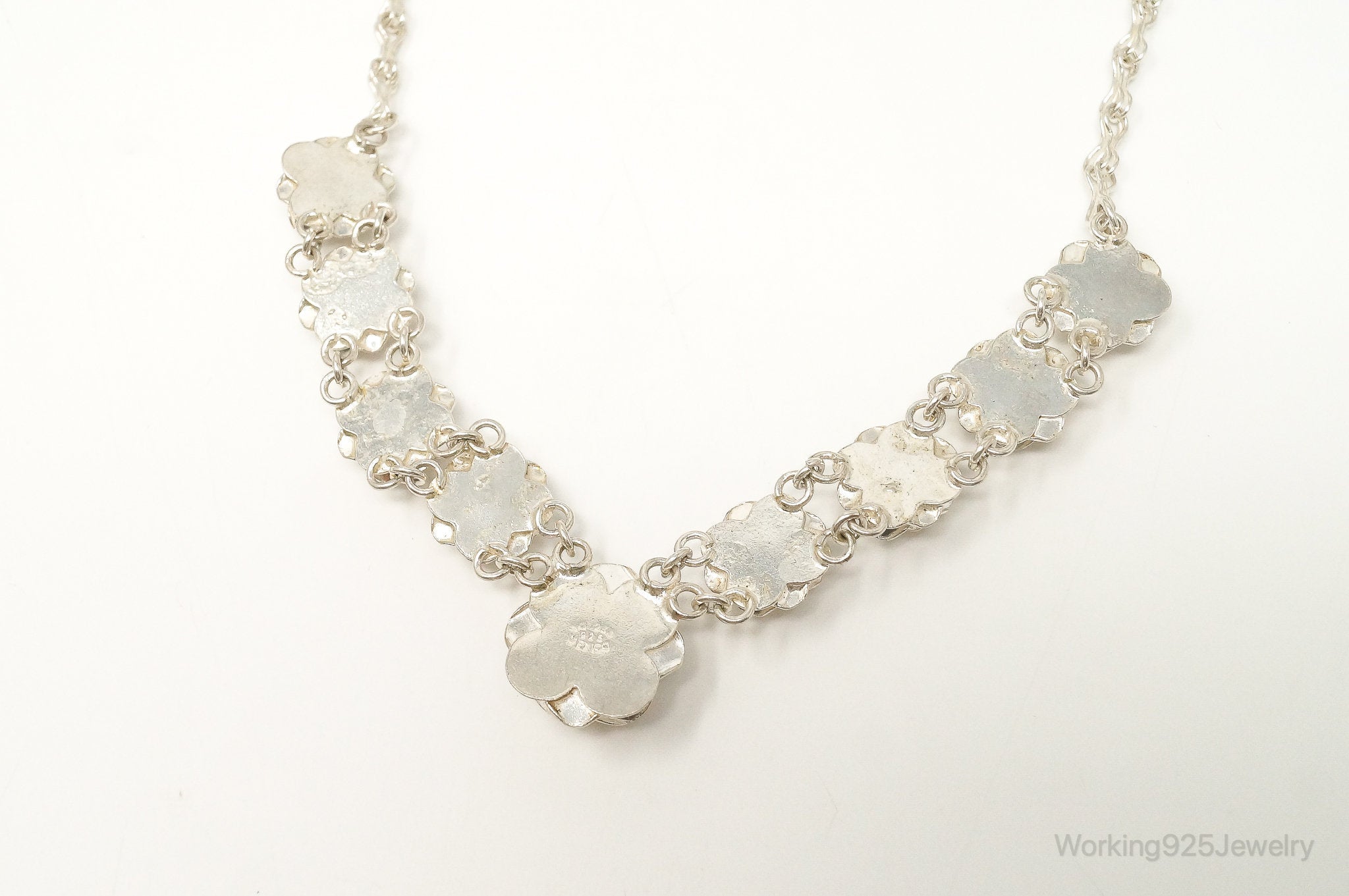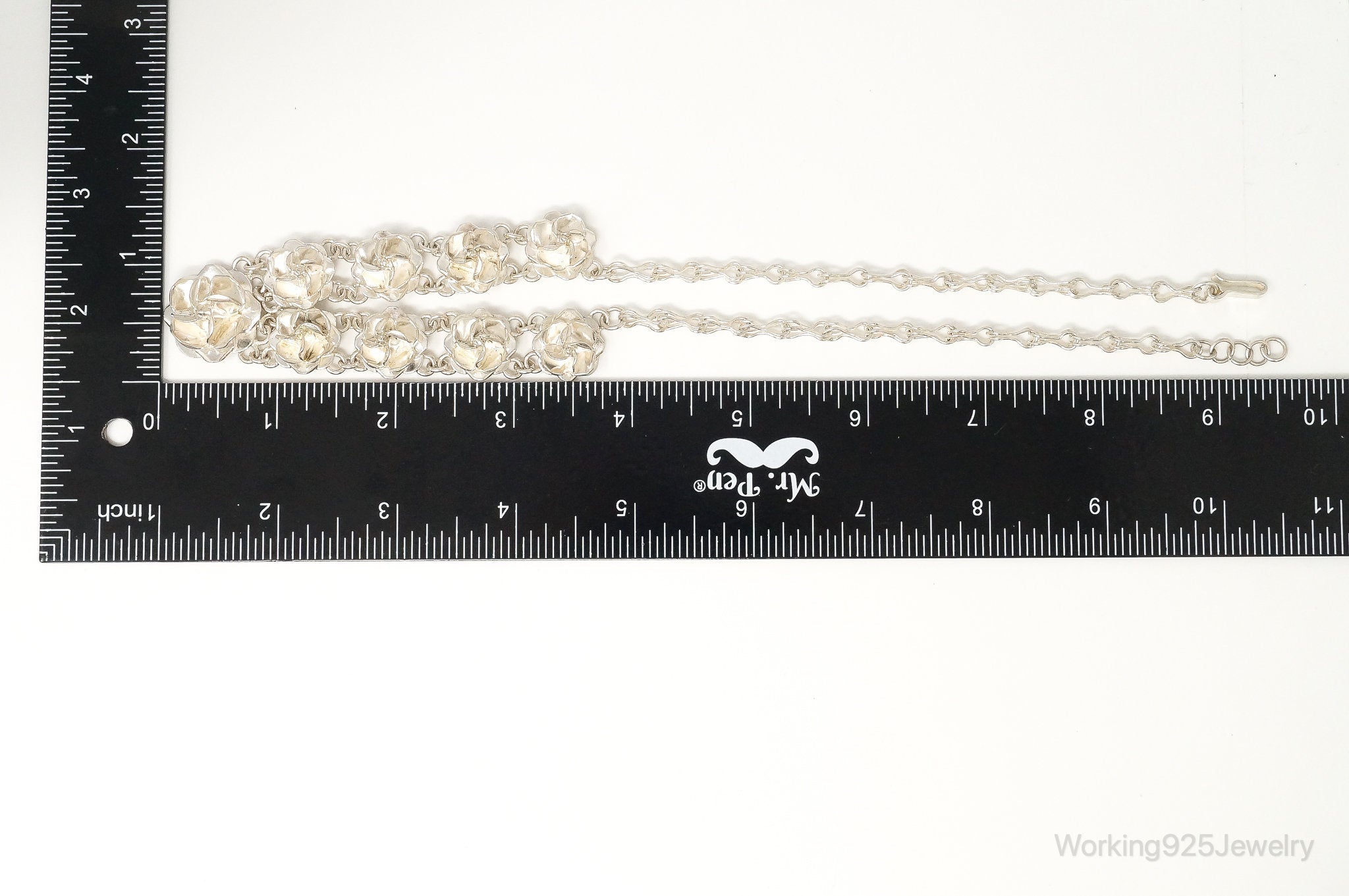 Vintage Mexico 3D Flowers Bloom Sterling Silver Necklace