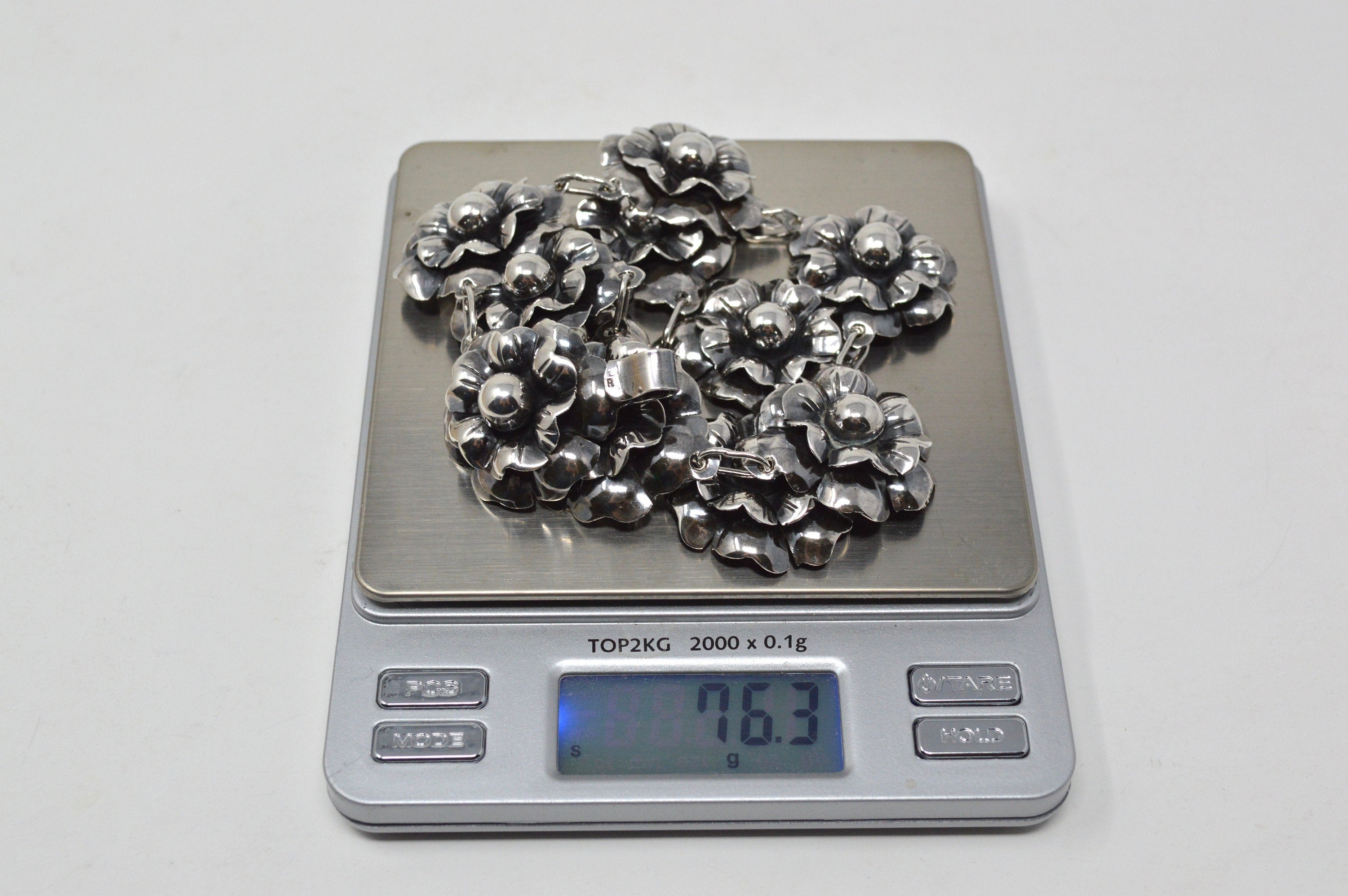 Vintage Mexico Sterling Silver Artisan 3D Flower Motif Necklace - 16 Inch