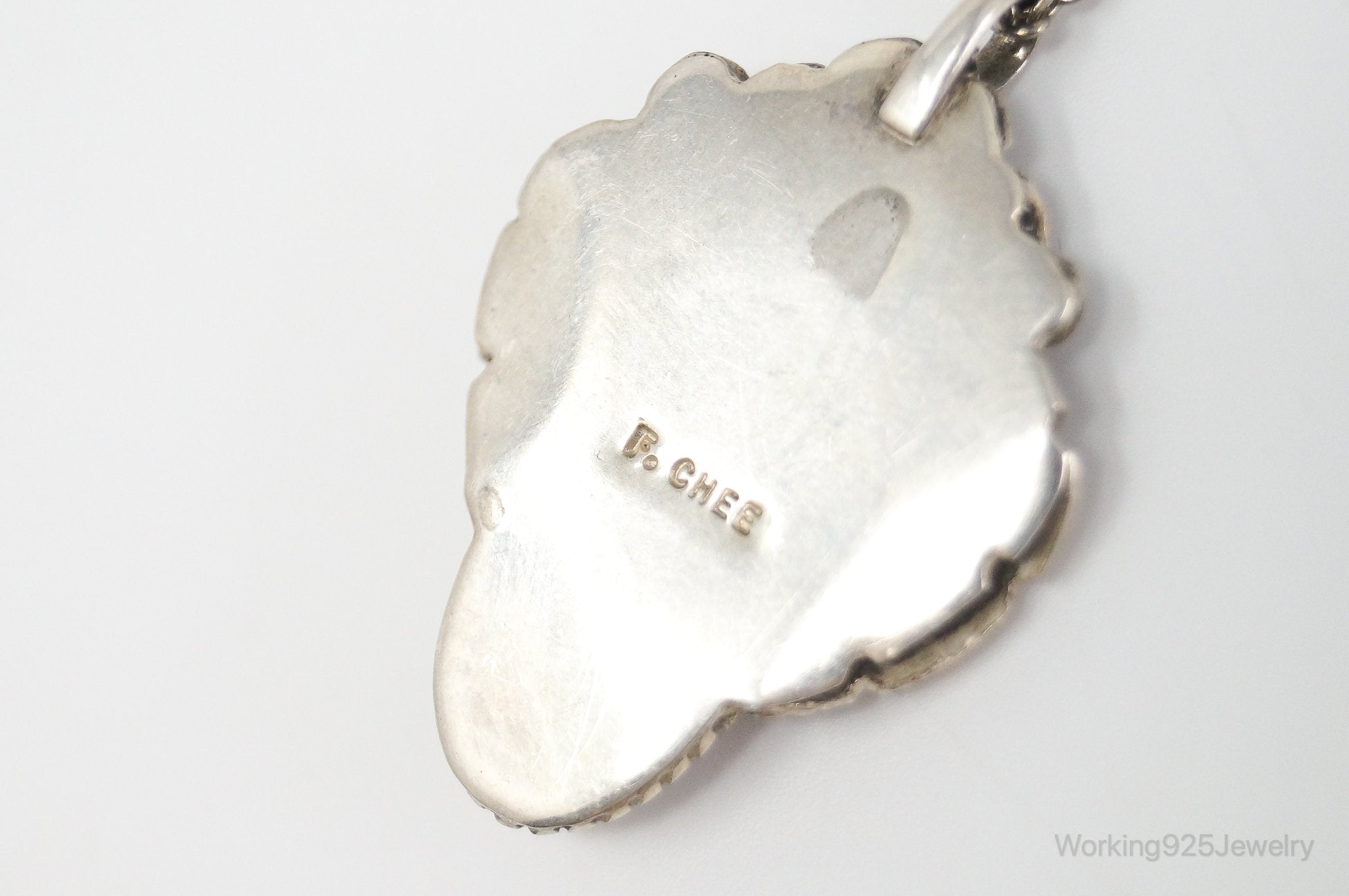 Vintage Native America F. Chee Pink Mother Of Pearl Sterling Silver Necklace