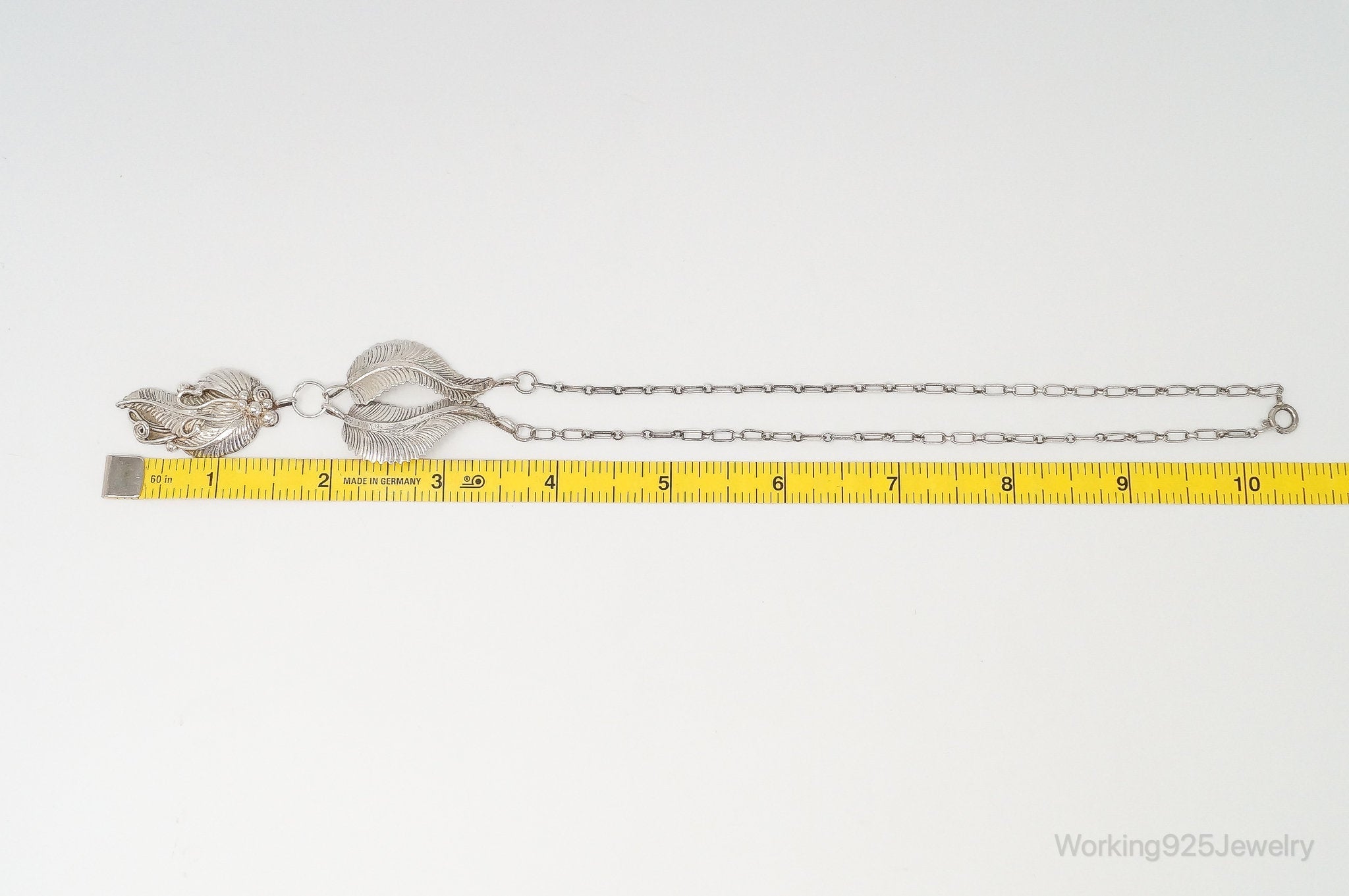 Vintage Native America F Handmade Feathers Design Sterling Silver Necklace