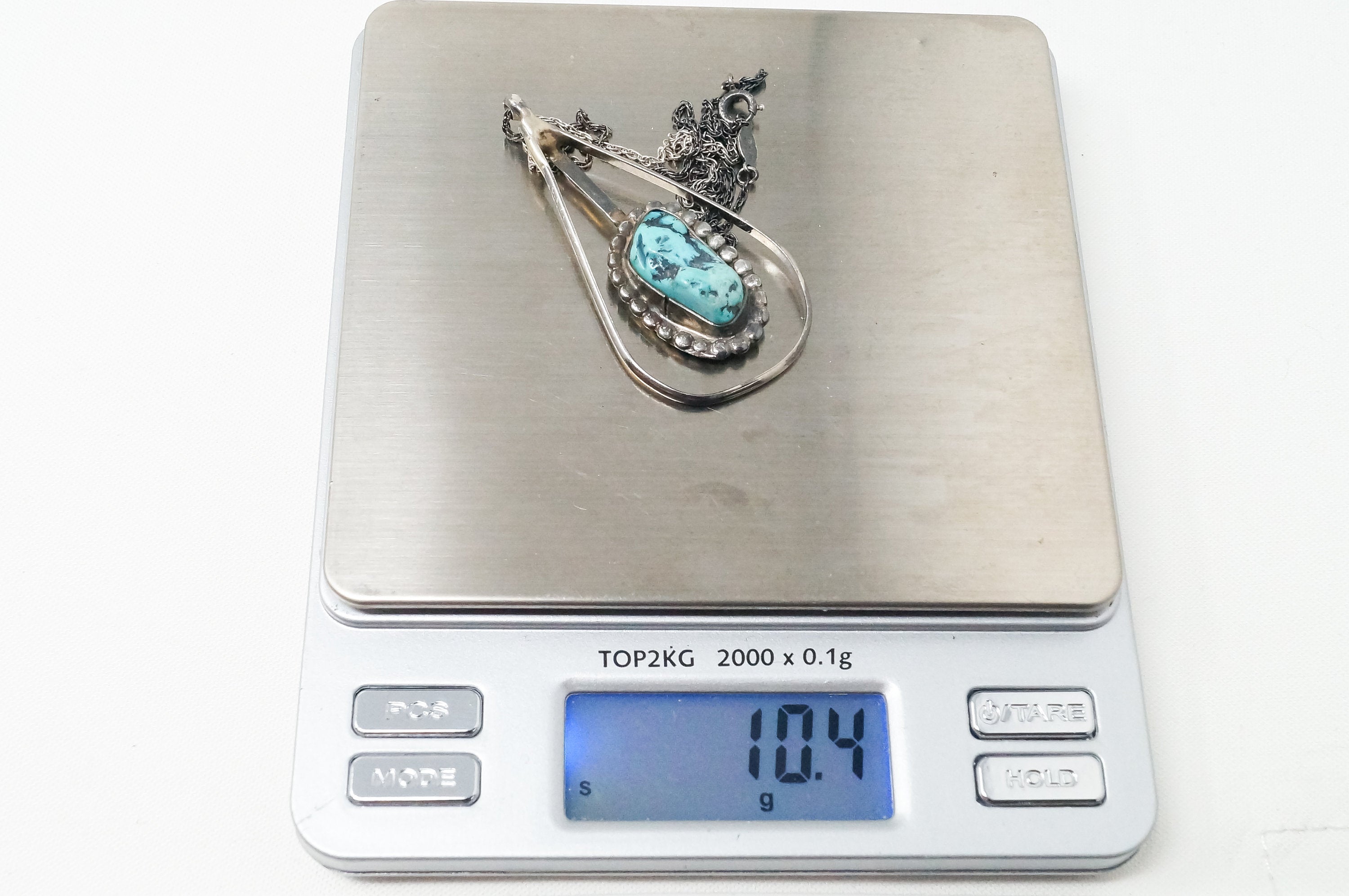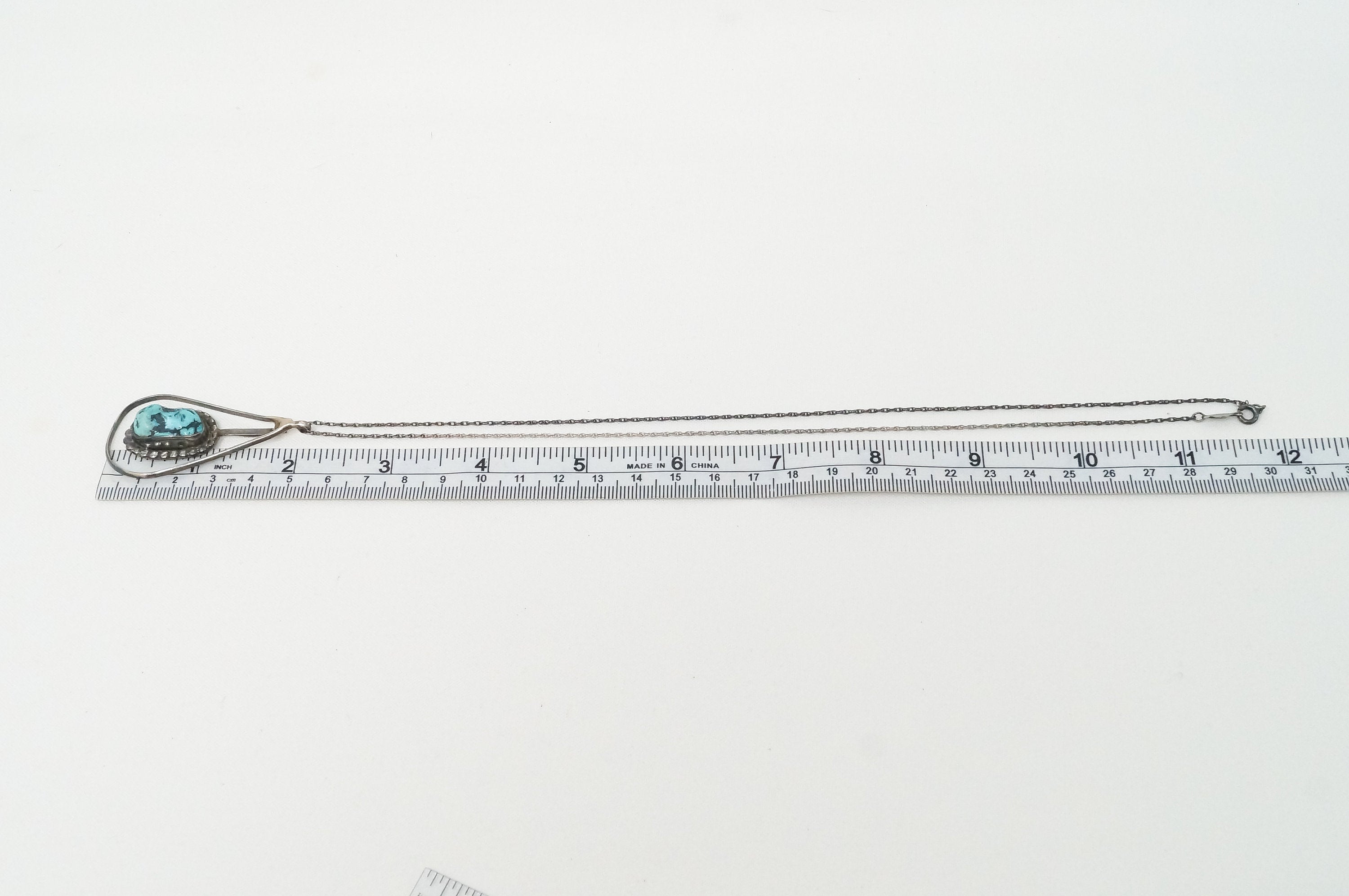 Vintage Native America Handmade Turquoise Sterling Silver Necklace