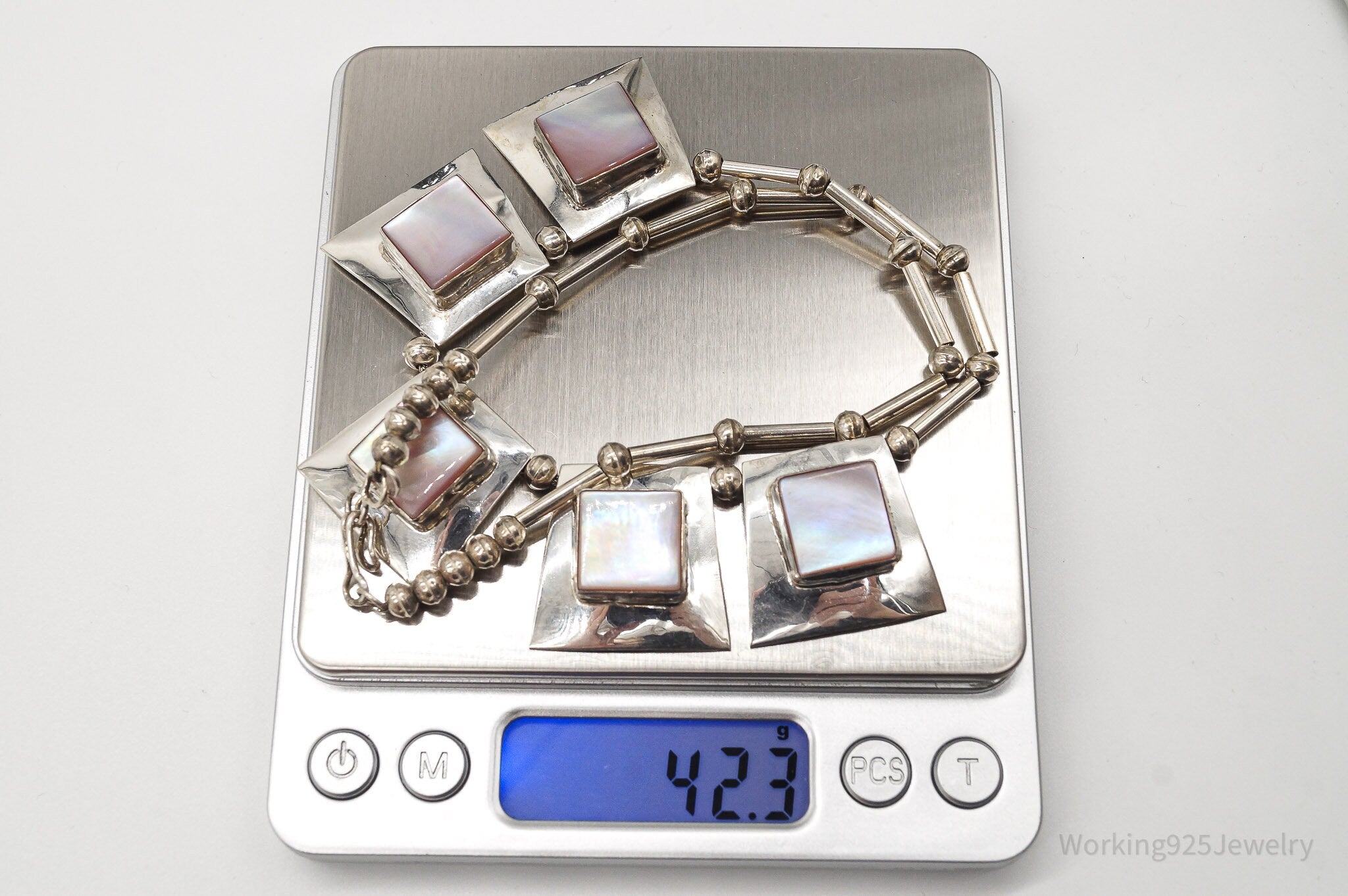 Vintage Native America Pink Mother Of Pearl Silver Necklace