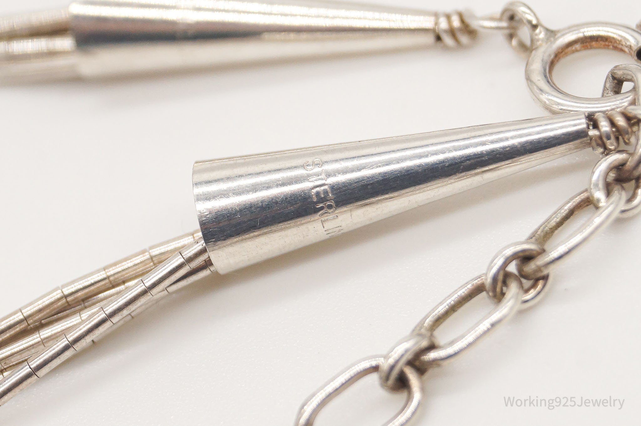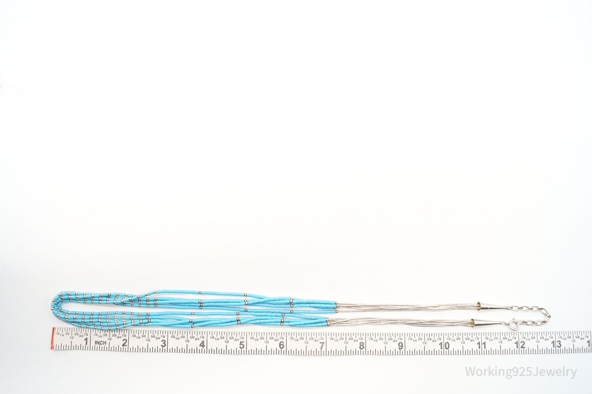 Vintage Native American Blue Turquoise Bead Sterling Silver Necklace
