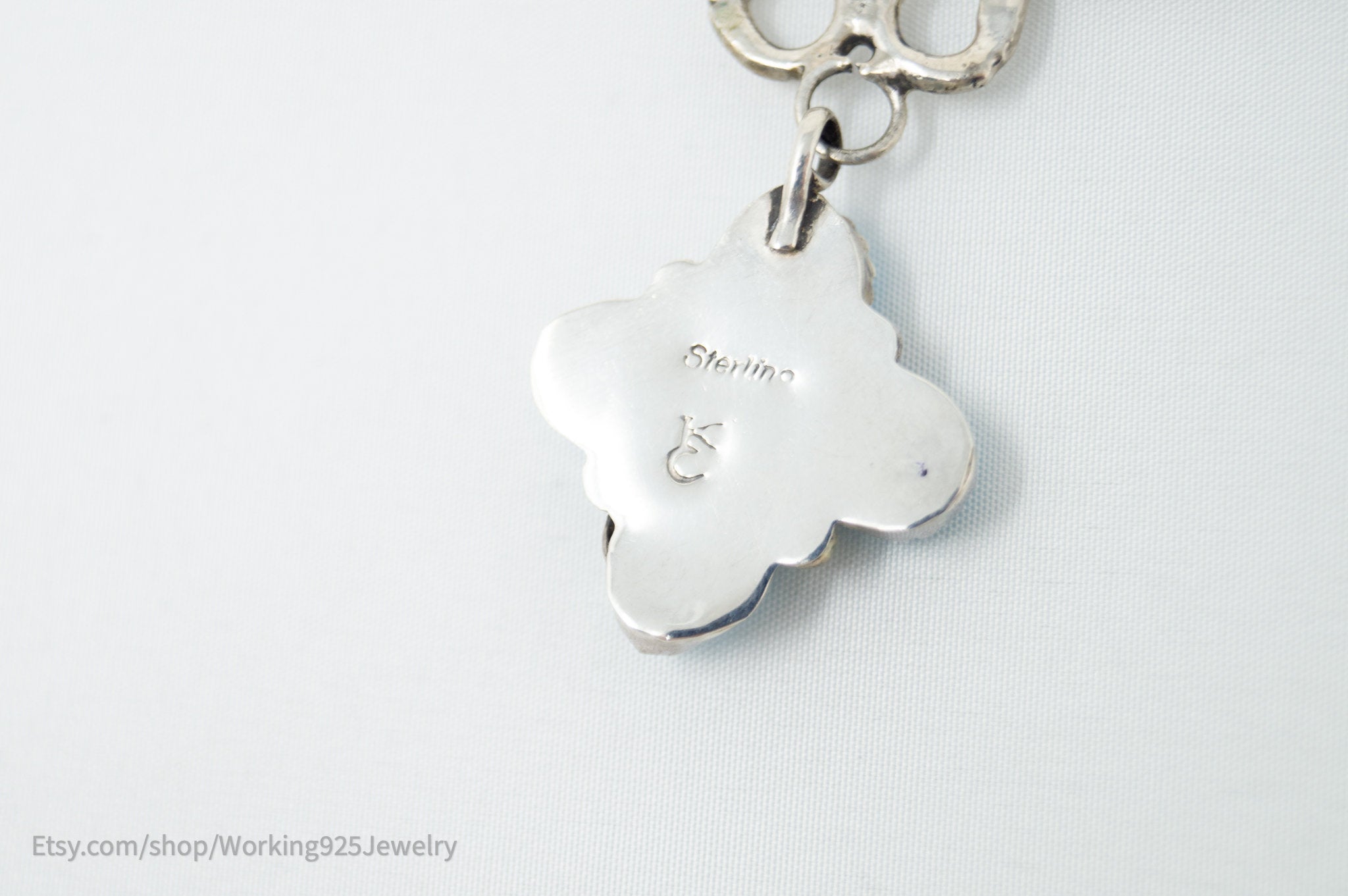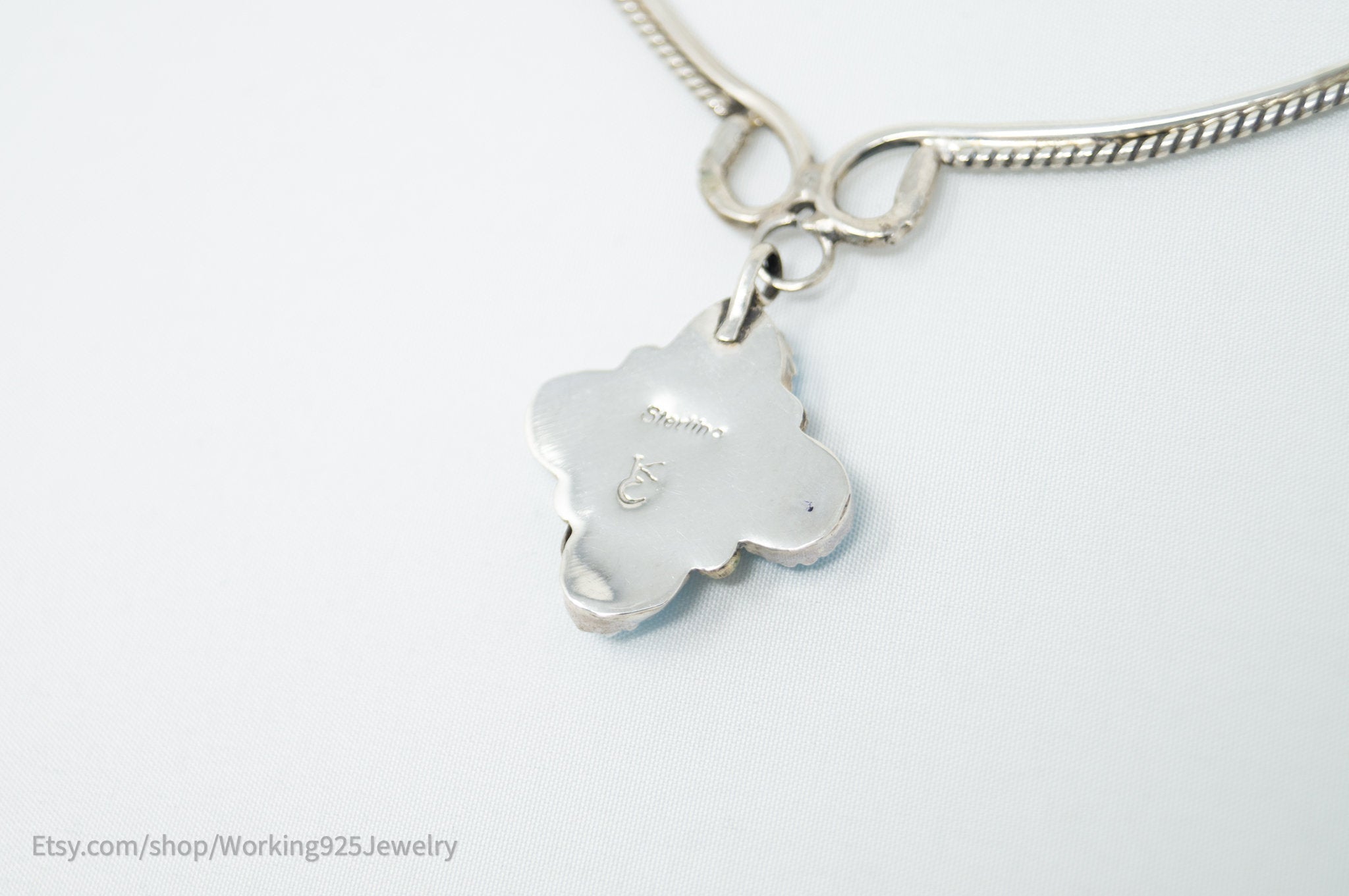 Vintage Native American Handmade KC Signed Turquoise Sterling Silver Necklace