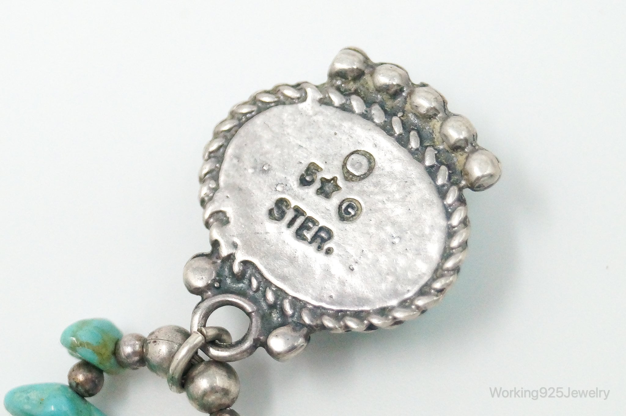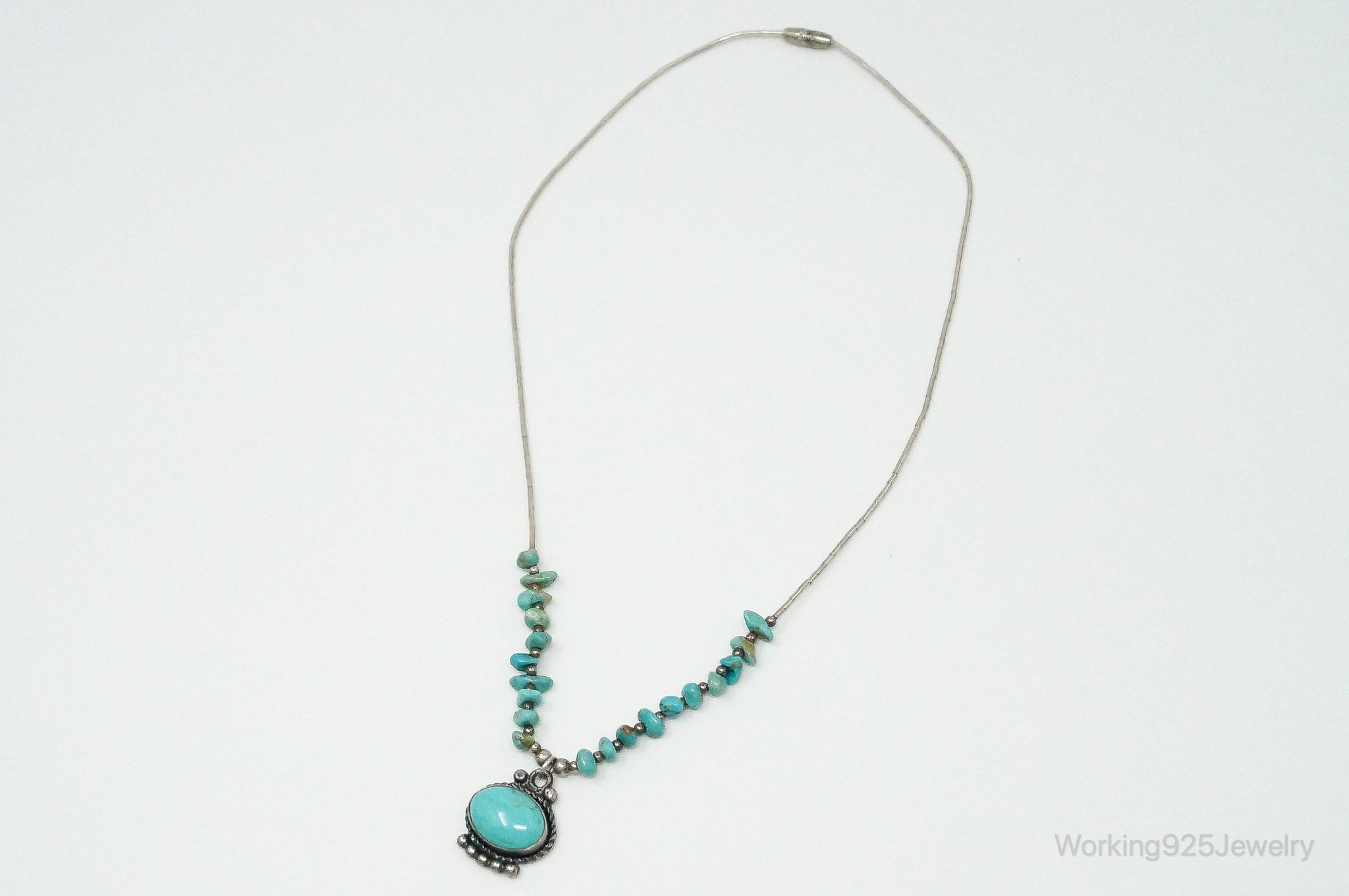 Vintage Native American Large Turquoise Sterling Silver Bead Necklace
