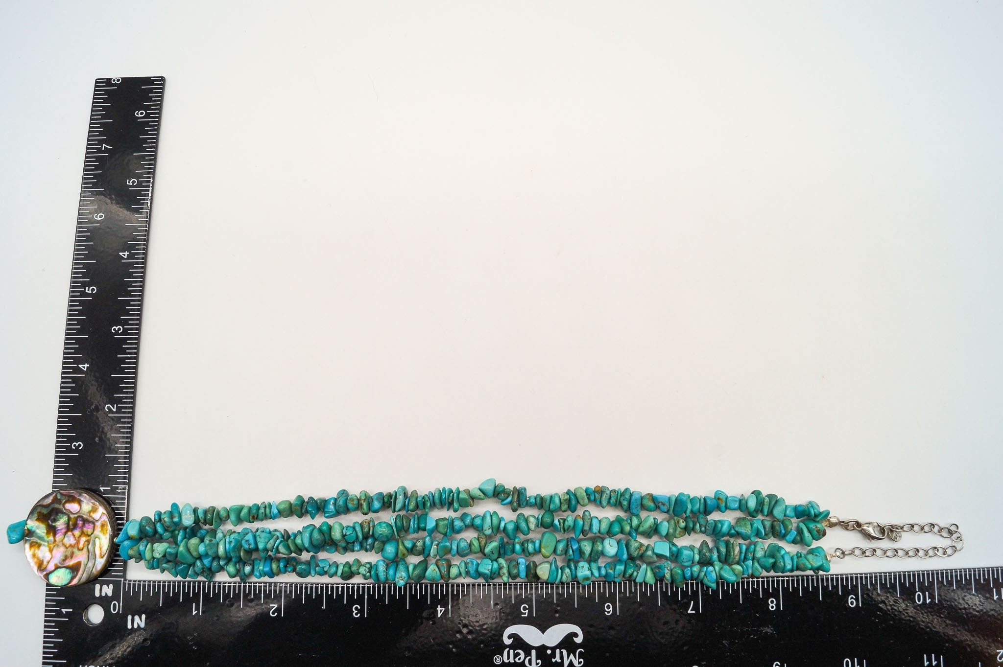 Vintage Native American Turquoise Abalone Shell Bead Sterling Silver Necklace