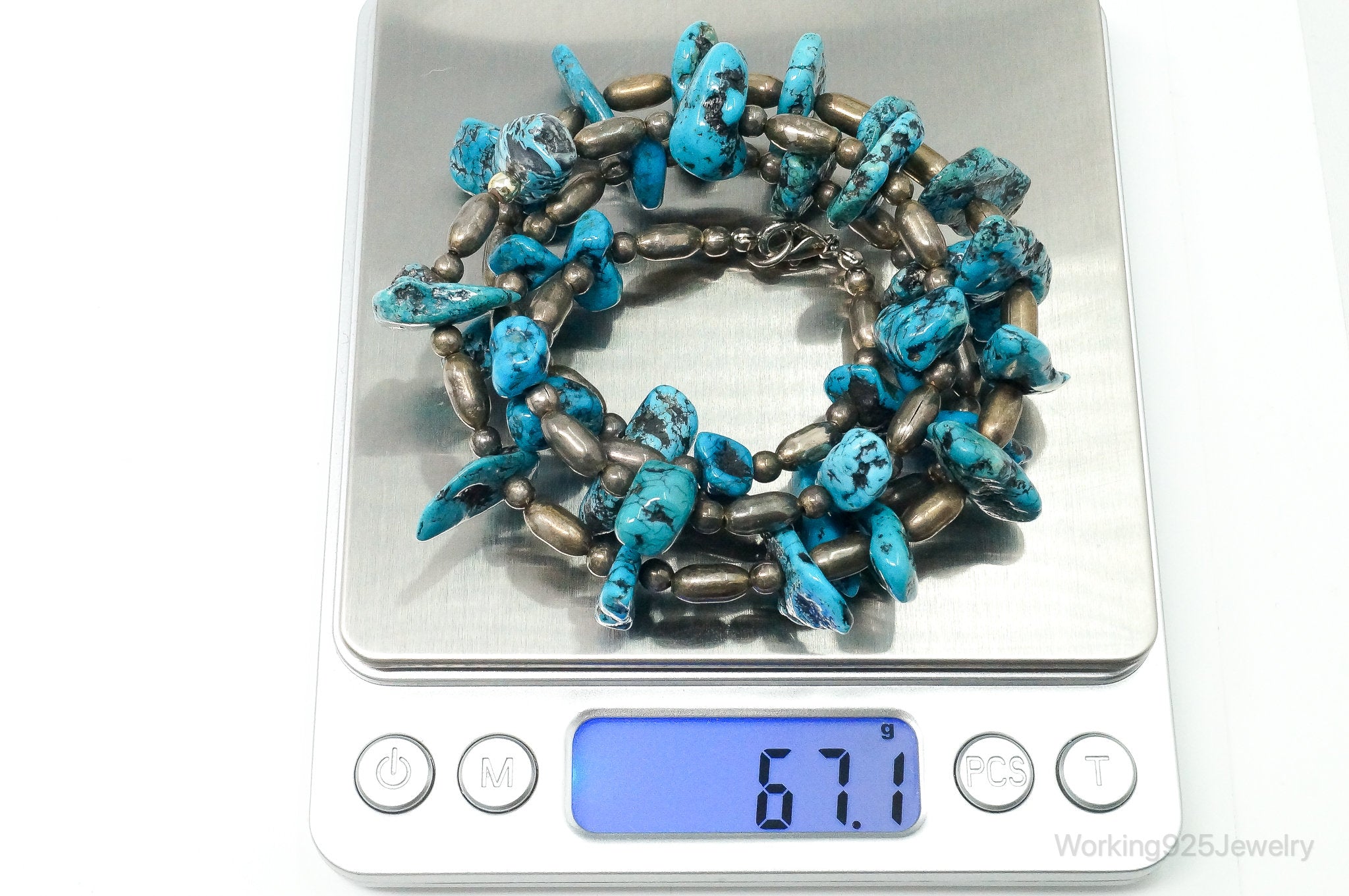 Vintage Native American Turquoise Beaded Sterling Silver Necklace