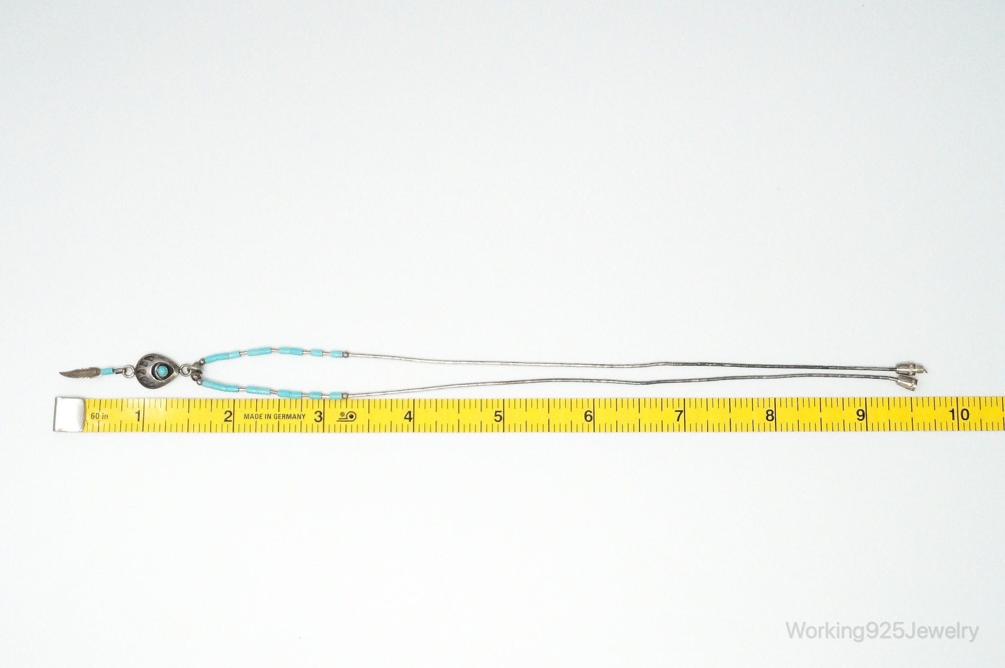 Vintage Native American Turquoise Bear Paw Sterling Silver Bead Necklace