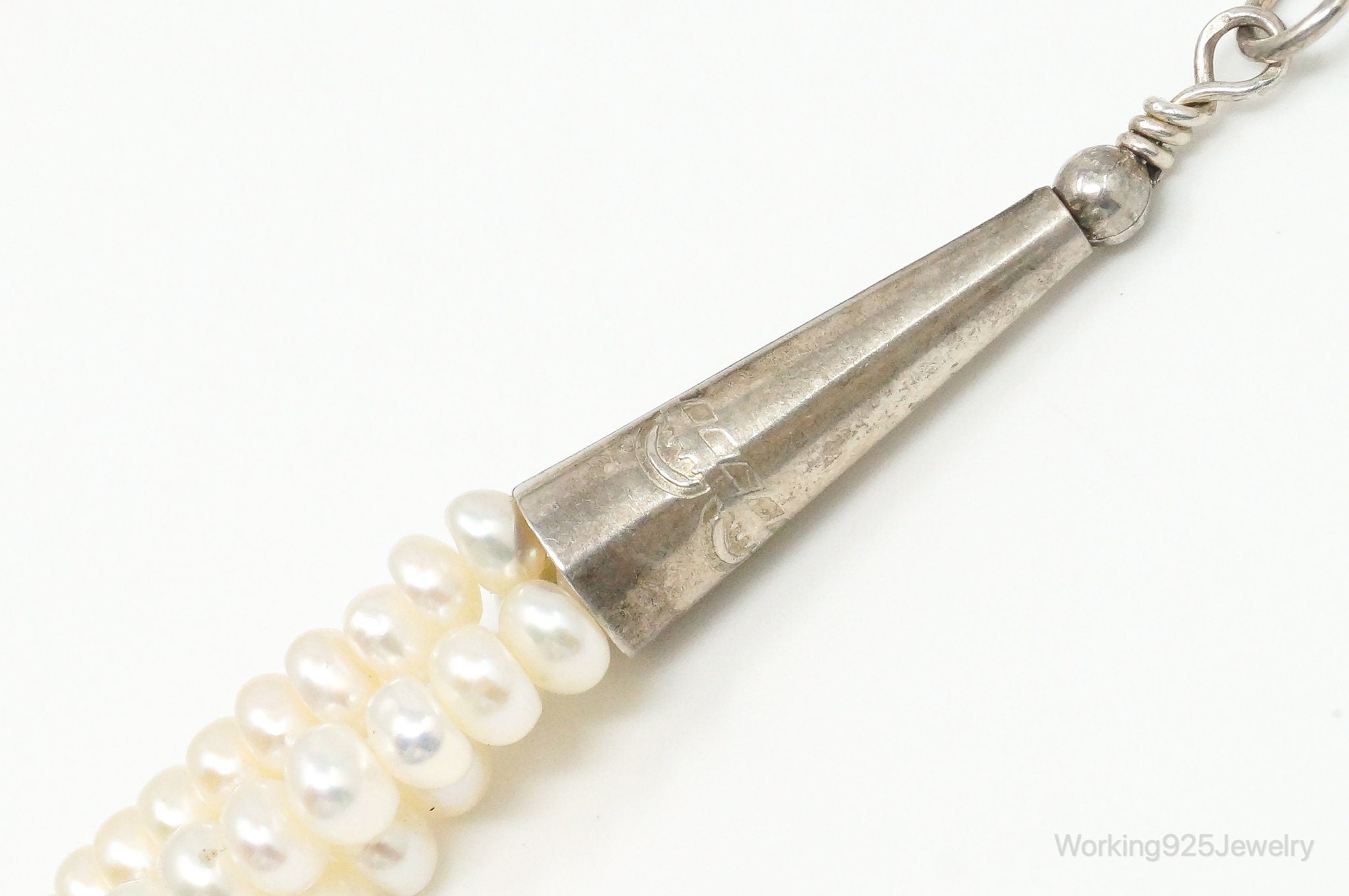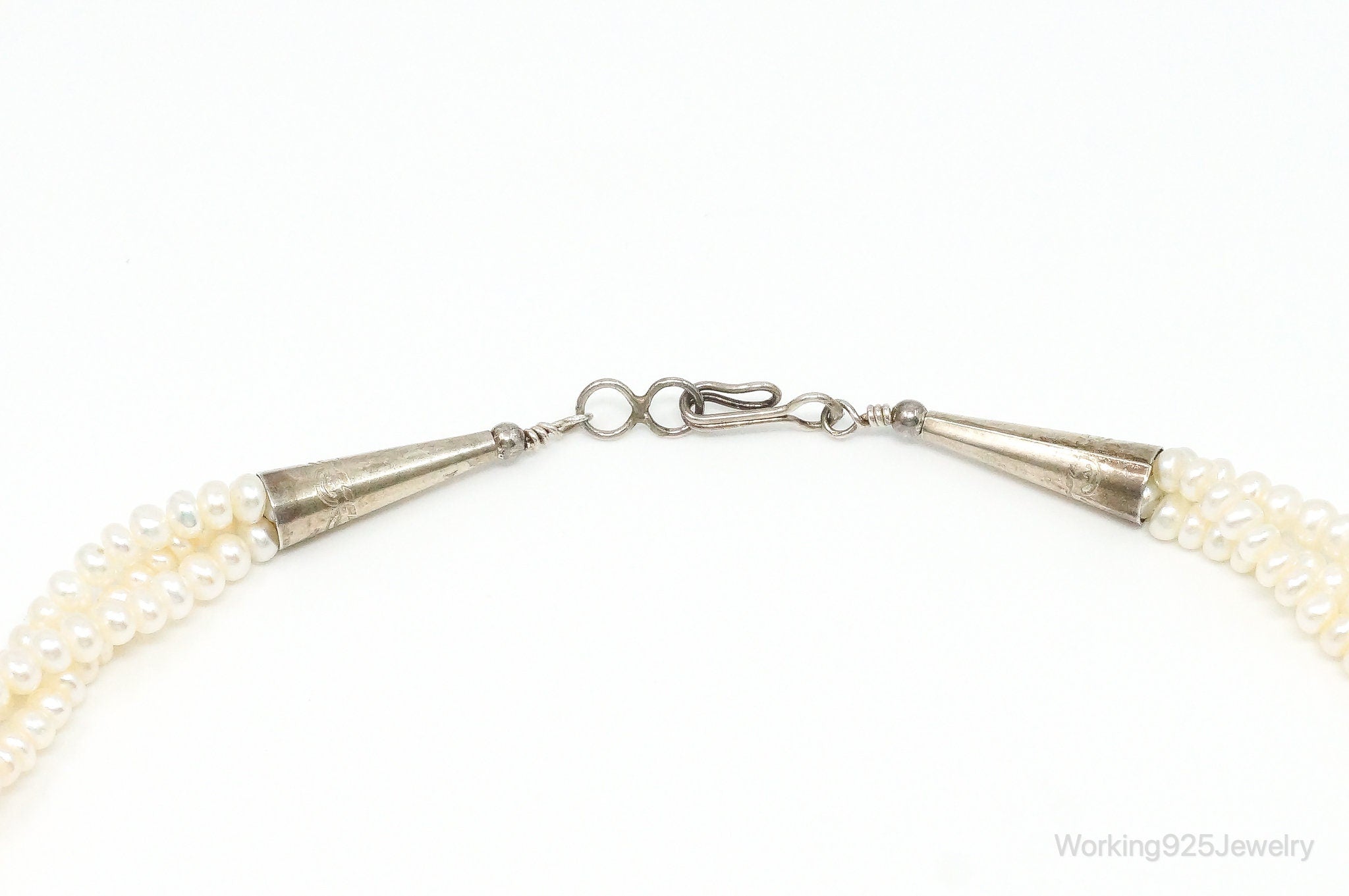 Vintage Native American Turquoise & Pearl Sterling Silver Bead Necklace