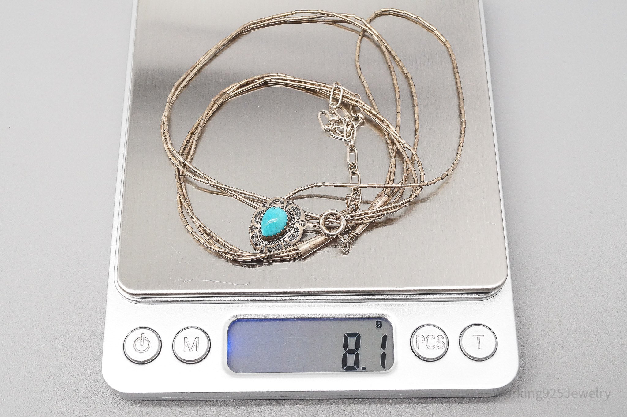 Vintage Native QT Pendant On Carolyn Pollack Bead Sterling Silver Chain Necklace