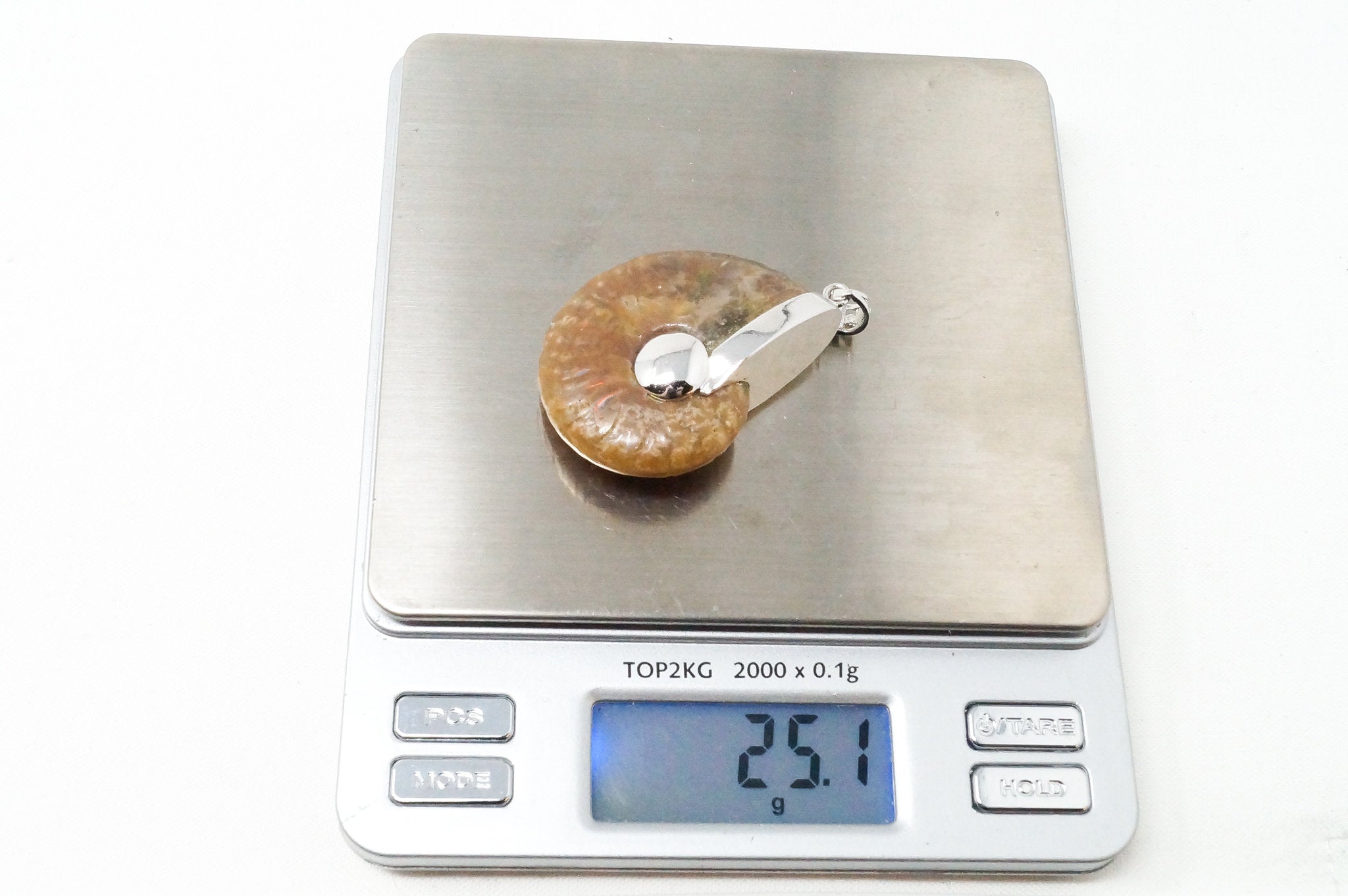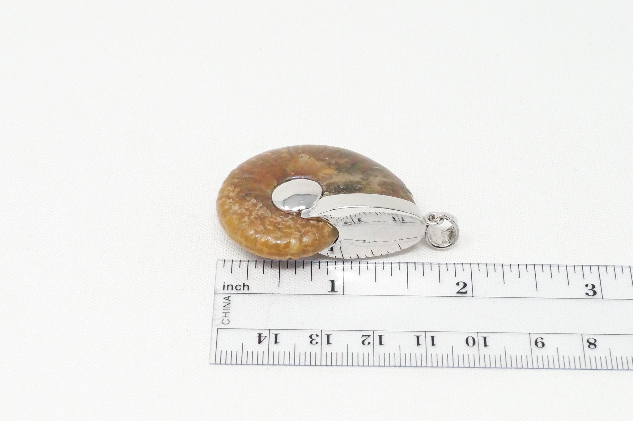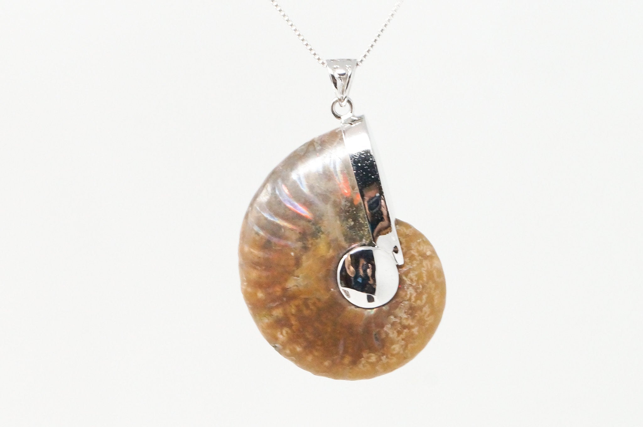 Vintage Nautilus Fossil Shell Sterling Silver Chunky Necklace Pendant