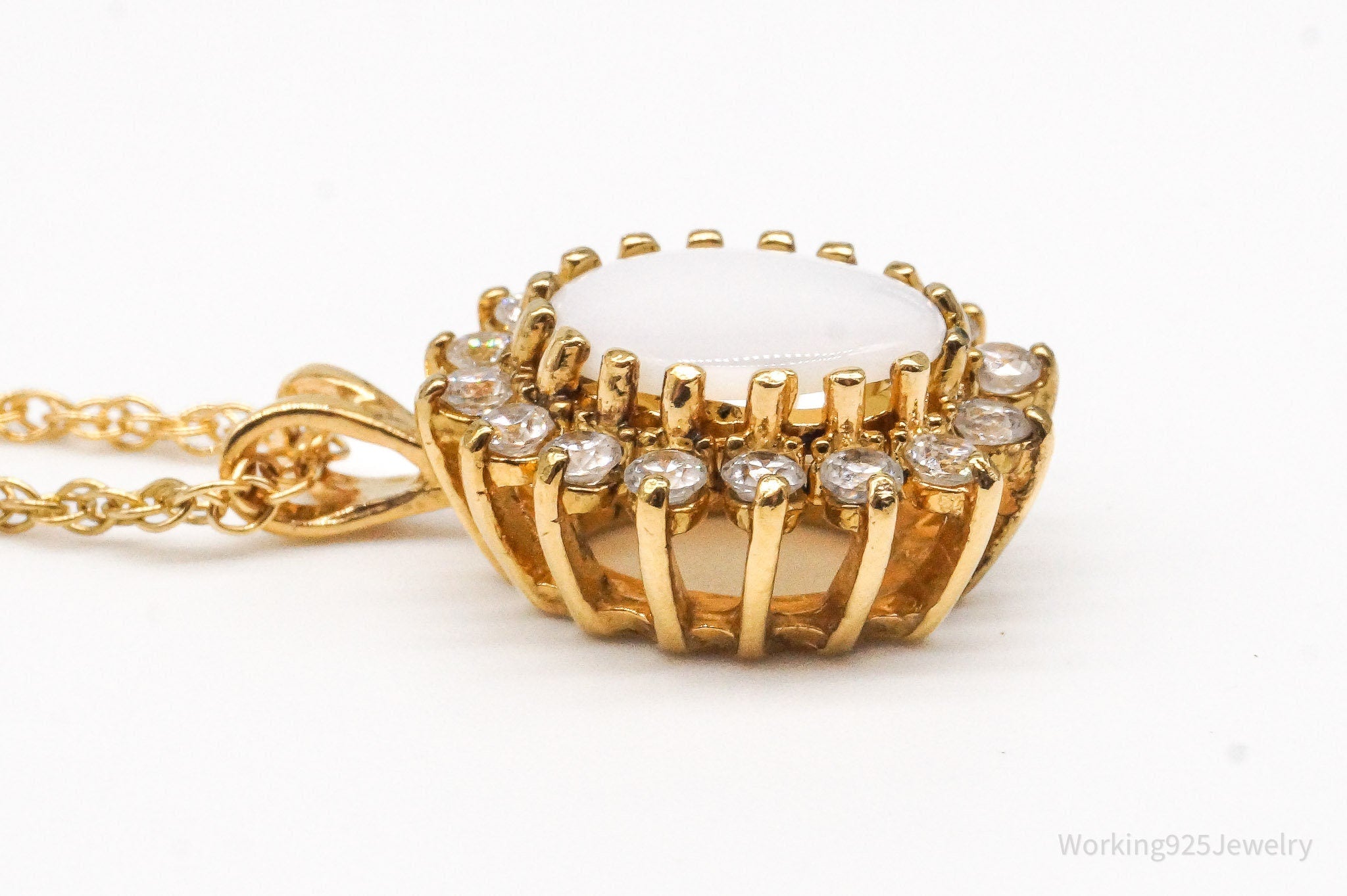 Vintage Opal Cubic Zirconia 14K Yellow Gold Filled Necklace