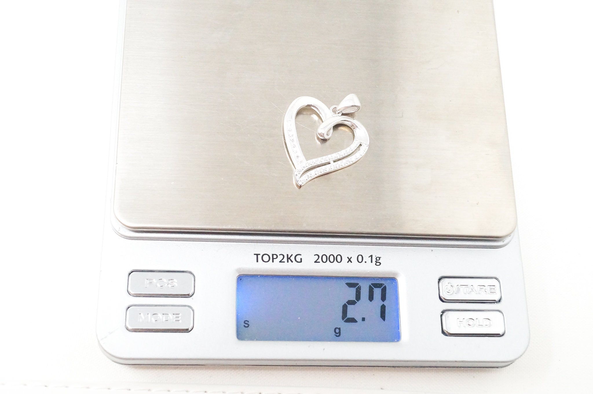 Vintage Open Heart Cubic Zirconia Accented Sterling Silver Necklace Pendant