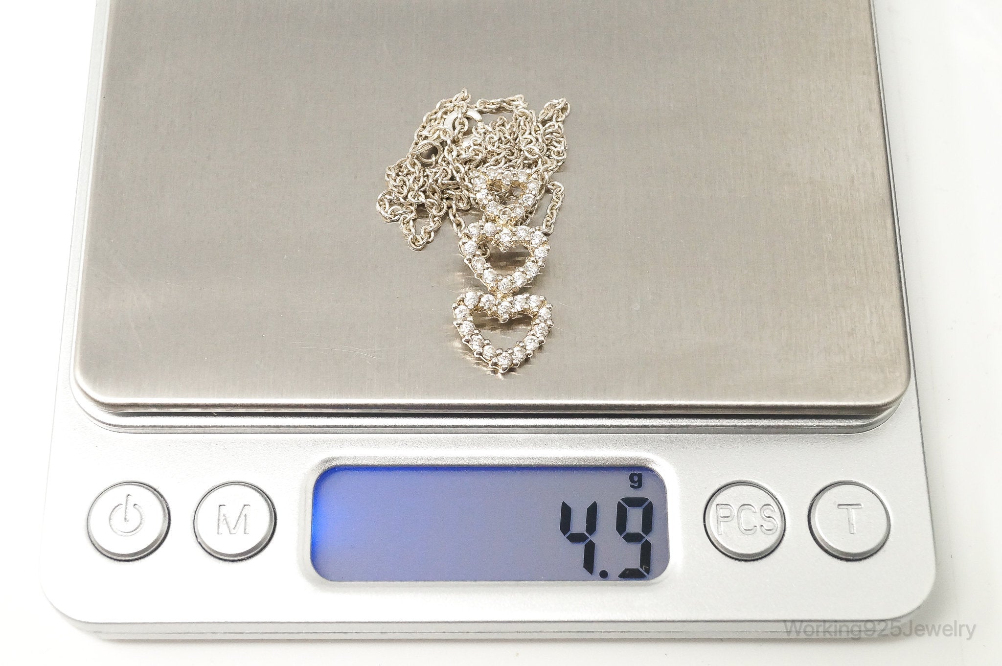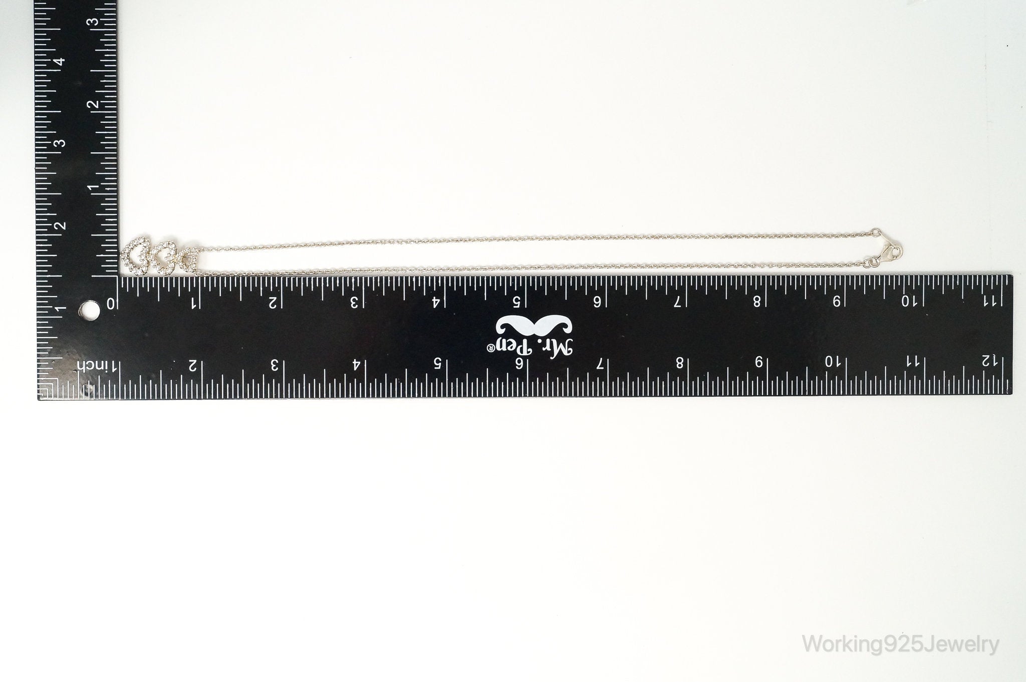 Vintage Open Hearts Cubic Zirconia Sterling Silver Necklace