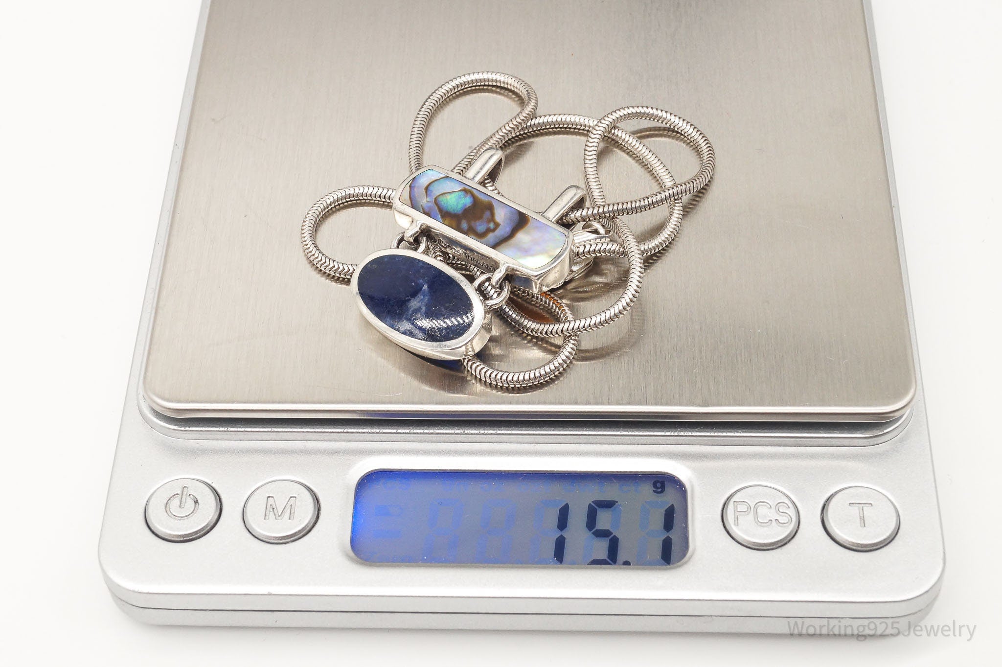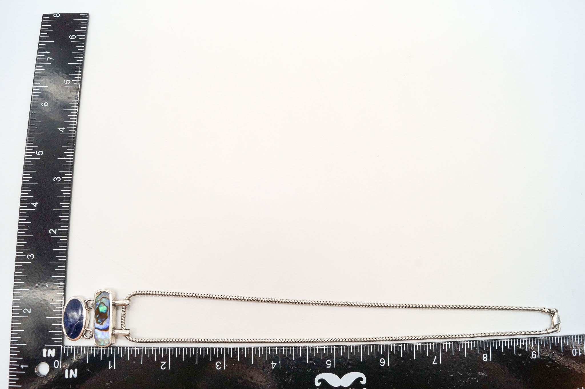 Vintage Paua Abalone Shell Sodalite Sterling Silver Necklace