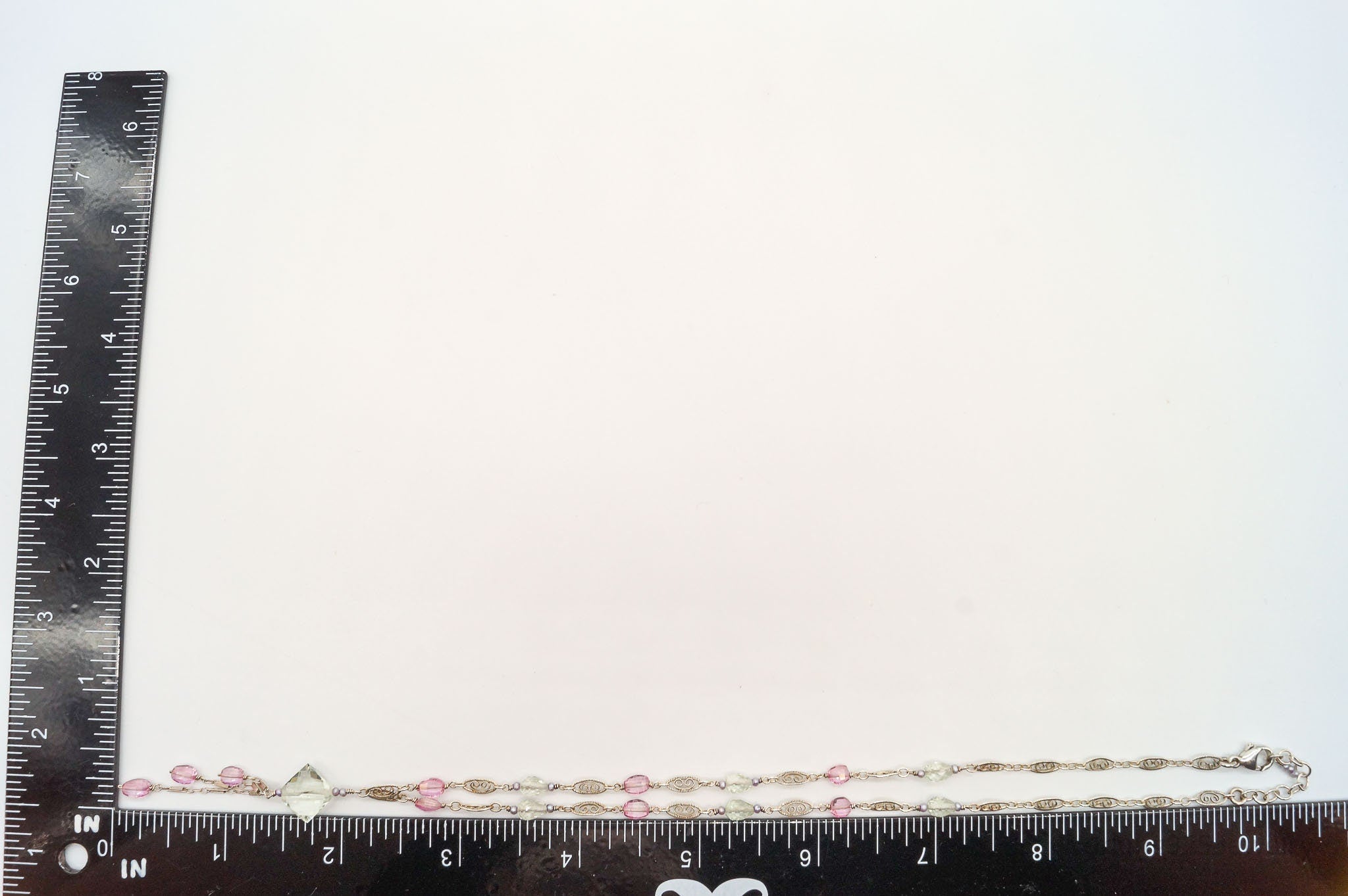Vintage Prasiolite Pink Topaz Seed Pearls Sterling Silver Necklace
