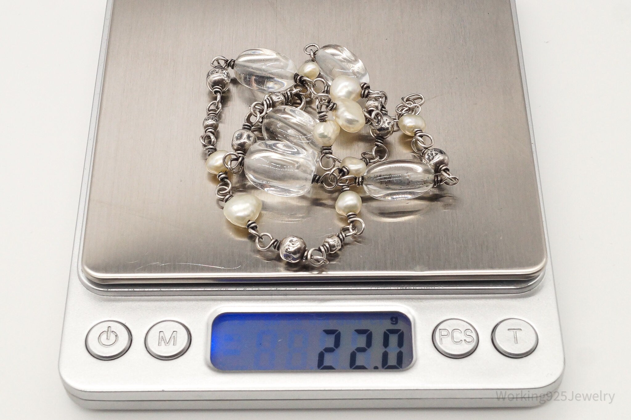 Vintage Retired Silpada Pearl Crystal Quartz Sterling Silver Necklace