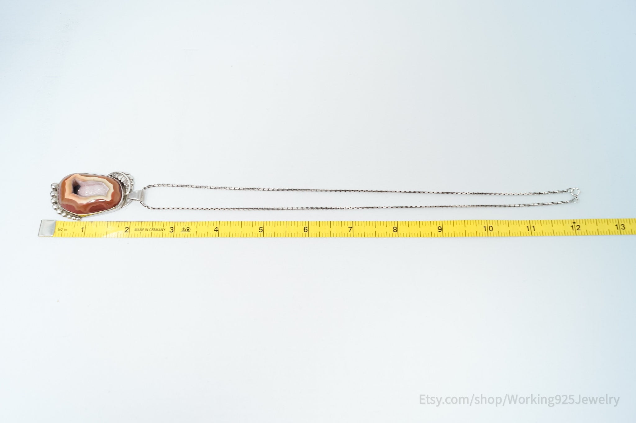 Vintage Signed Native American Crazy Lace Agate Sterling Silver Necklace