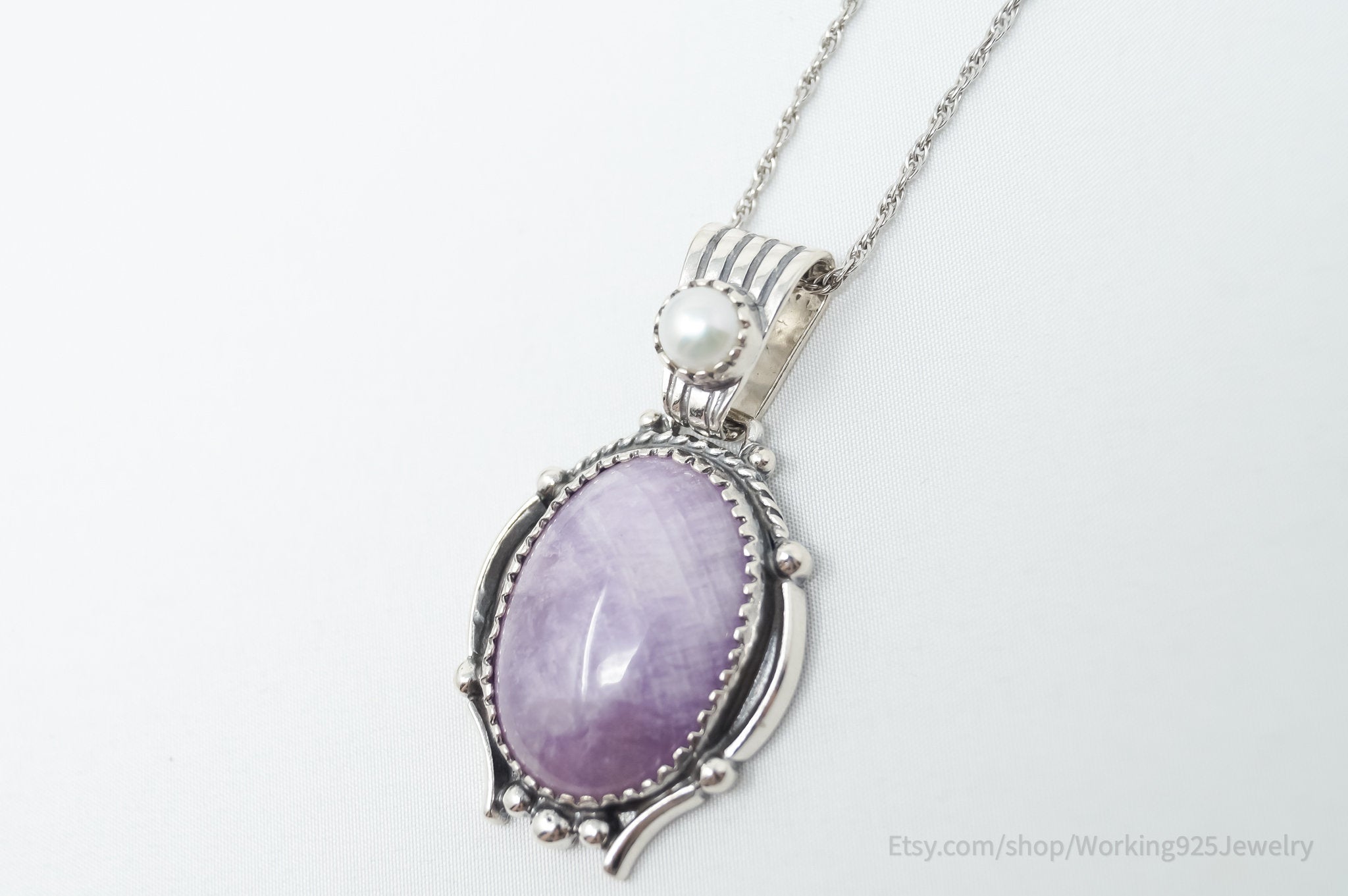 Vintage Southwestern Charoite Pearl Sterling Silver Necklace