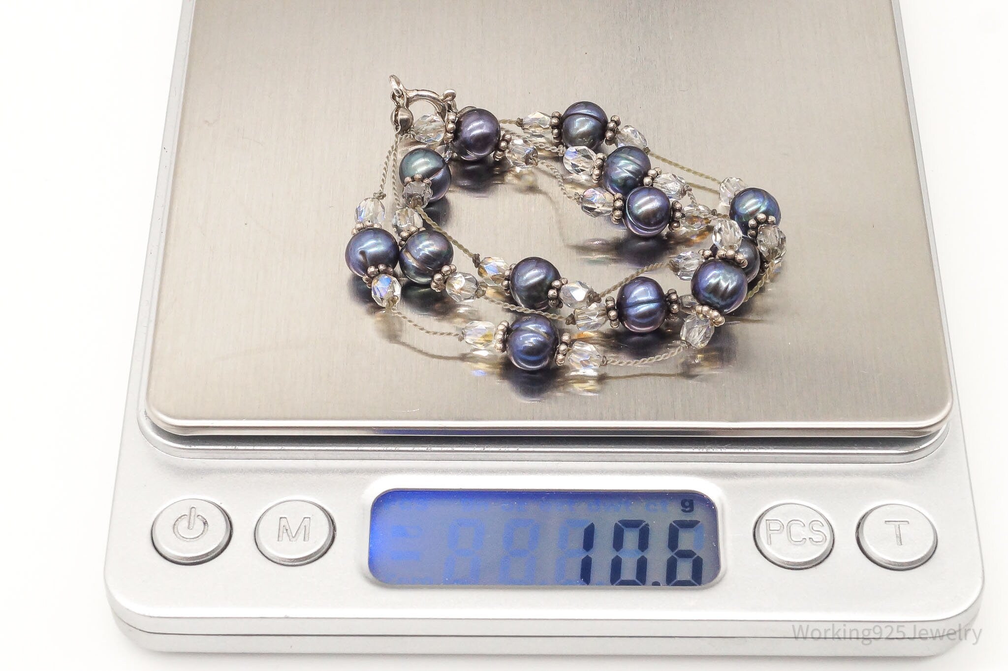 Vintage Tahitian Pearl & Glass Bead Sterling Silver String Necklace